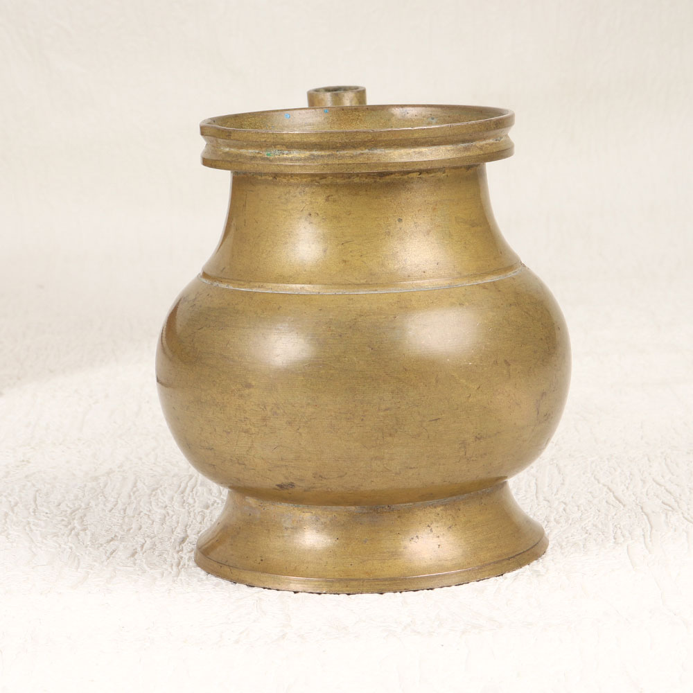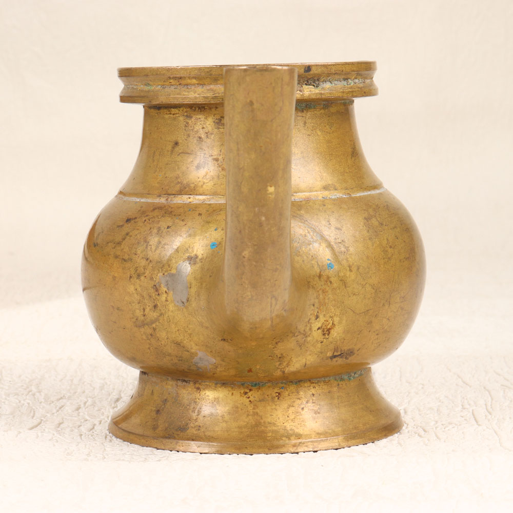 Transport yourself to a bygone era of faith and ritual with this vintage brass holy water pot. Cast in solid brass with a subtle finish, this pot invokes timeless reverence. This vintage pot allows you to continue century-old traditions. Keep it by your door to bless yourself and your guests, bringing calm and protection. Place it bedside to ward off restless nights. Let it be a reminder of devotion, bestowing peace of mind wherever it rests. Bring spiritual comfort to your home with this vintage brass holy water pot. Its classic styling provides a meaningful bridge to the past for the faithful and appreciators of historic charm alike.