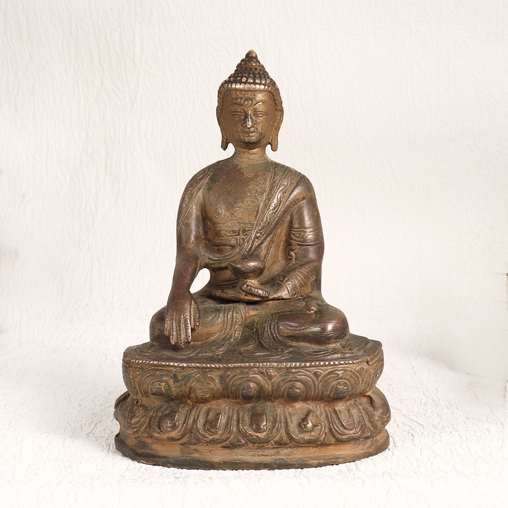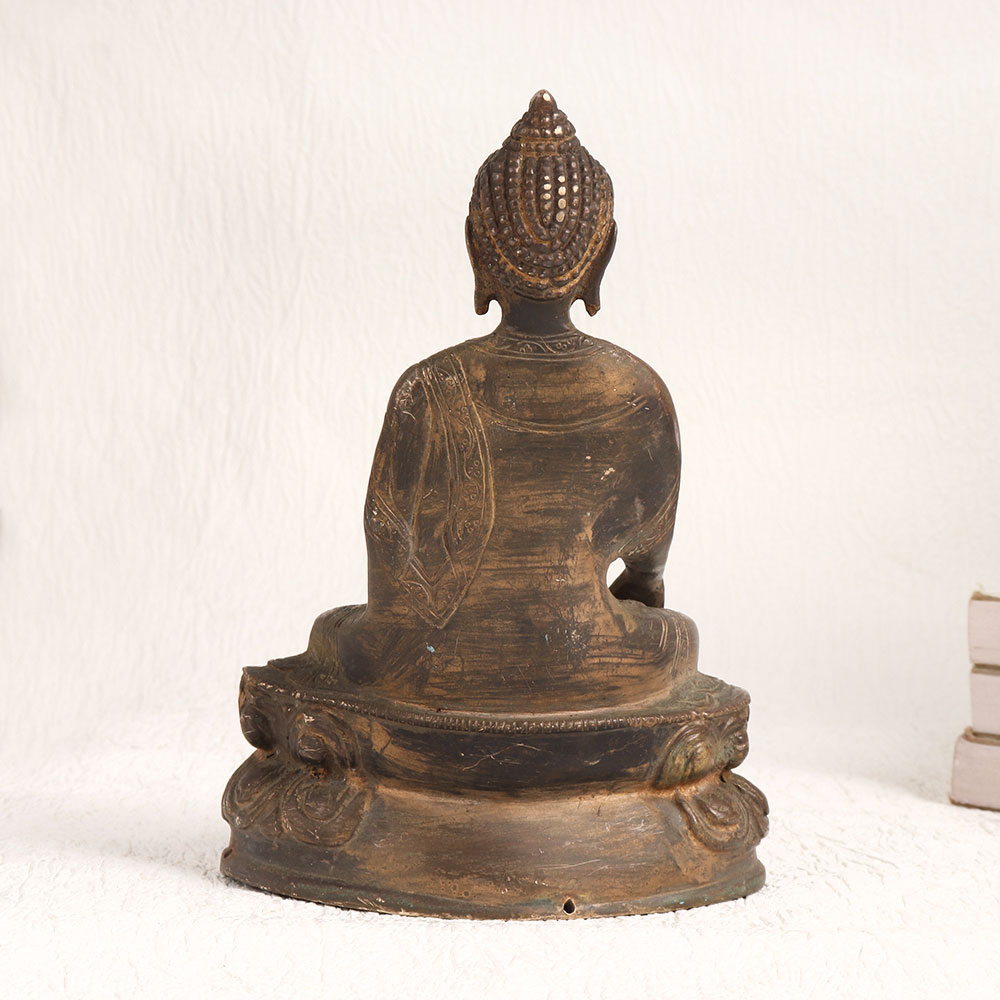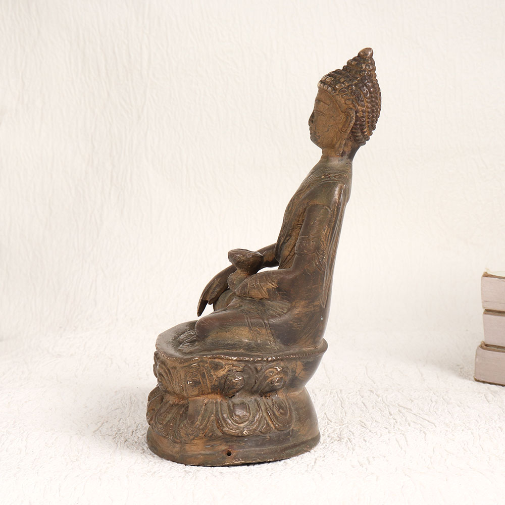 Buy a brass statue of Lord Buddha online and get a hassle free delivery right at your doorstep. This meticulously crafted masterpiece showcases the enlightened one in a serene seated position upon a platform, cradling a pot in his hand. The antique brown finish adds a touch of antiquity, exuding an aura of serenity and grace. Handmade by professional Indian artisans, this statue is a testament to their craftsmanship and devotion. Crafted from high-quality brass, it radiates durability and opulence. Its versatility is unmatched, place it in your home, office, restaurant, hotel, cafe, or shop to infuse an aura of tranquillity and spirituality. Whether for worship or decoration, this statue serves as a captivating focal point. It's also a prized addition to your vintage collection or exhibition display, captivating connoisseurs and enthusiasts alike. Gift it to your loved ones on special, festive, or auspicious occasions, conveying your blessings and appreciation for their presence in your life.