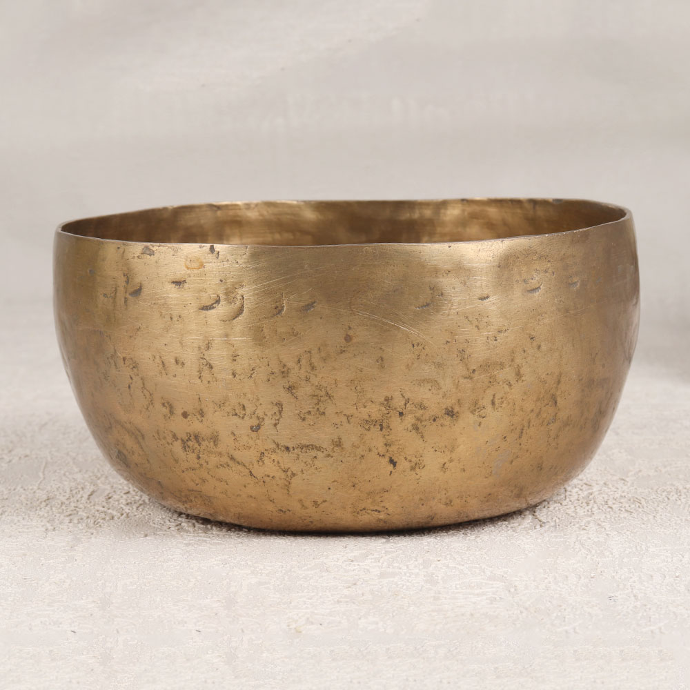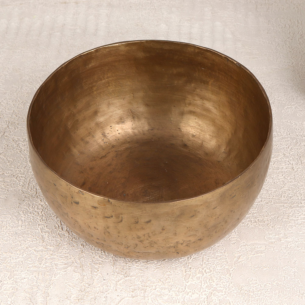 Buy an Antique Brown Bell Metal Singing Bowl online that is a masterpiece crafted by talented artisans in the rich tradition of Islamic Art. This unique meditation bowl is a symbol of elegance and serenity, designed to enhance your space with its antique brown finish. Meticulously handmade from high-quality bell metal, this singing bowl resonates with a soothing sound that transports you to a state of tranquillity. Whether placed in your home, office, restaurant, hotel, or cafe, the bell metal singing bowl serves as a captivating decoration, adding a touch of cultural sophistication to any environment. Its versatility extends beyond aesthetics; the singing bowl is a powerful tool for meditation, mindfulness, and relaxation. The melodic tones produced by gently striking or rubbing the bowl's rim create an immersive sonic experience, fostering a sense of inner calm and balance. This exquisite piece also makes for a thoughtful and meaningful gift for your loved ones on special, festive, or auspicious occasions.