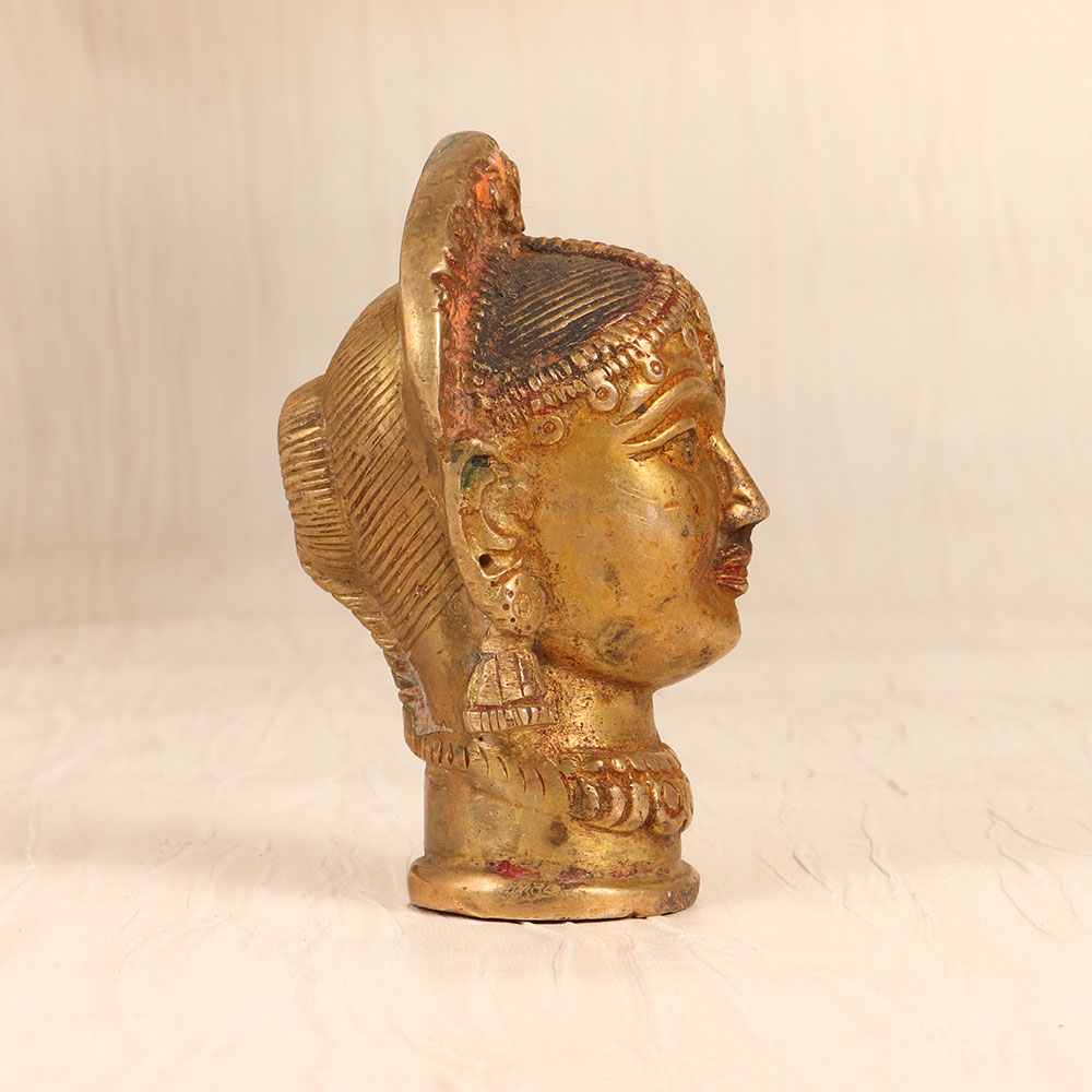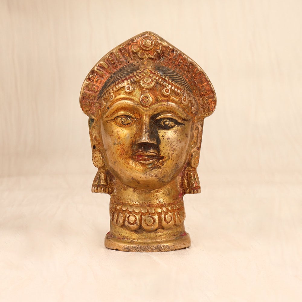 Bring the divine energy of the Goddess Gauri into your home with this stunning brass statue. Crafted with exquisite detail, this vintage piece commands attention and radiates an aura of serenity and grace. Gaze upon the serene countenance of the Goddess Gauri and feel the weight of your worries lift. This brass statue serves as a profound reminder to slow down, connect with the divine, and find inner peace. Place it in your prayer room, on your altar, or anywhere you seek to cultivate a sacred space. As you light incense and offer your prayers, the Gauri statue will become a cherished focal point, inspiring you to tap into your own spiritual essence and the boundless grace of the feminine divine. This vintage brass statue is a must-have for anyone seeking to deepen their spiritual practice or infuse their living space with an air of reverence and mysticism. Invite the blessings of the Goddess Gauri into your life and let her gentle, nurturing energy guide you on your journey of self-discovery and enlightenment.