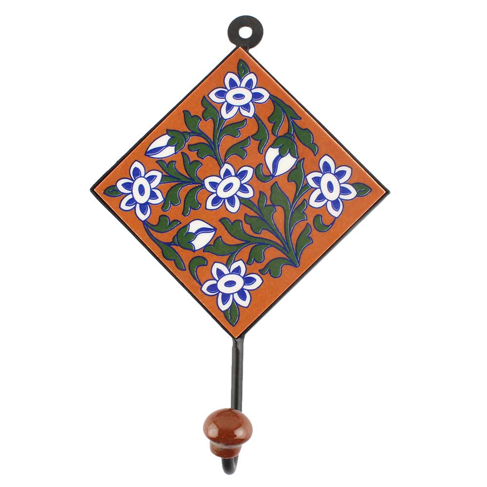Brown Floral Ceramic Tile Wall Hook