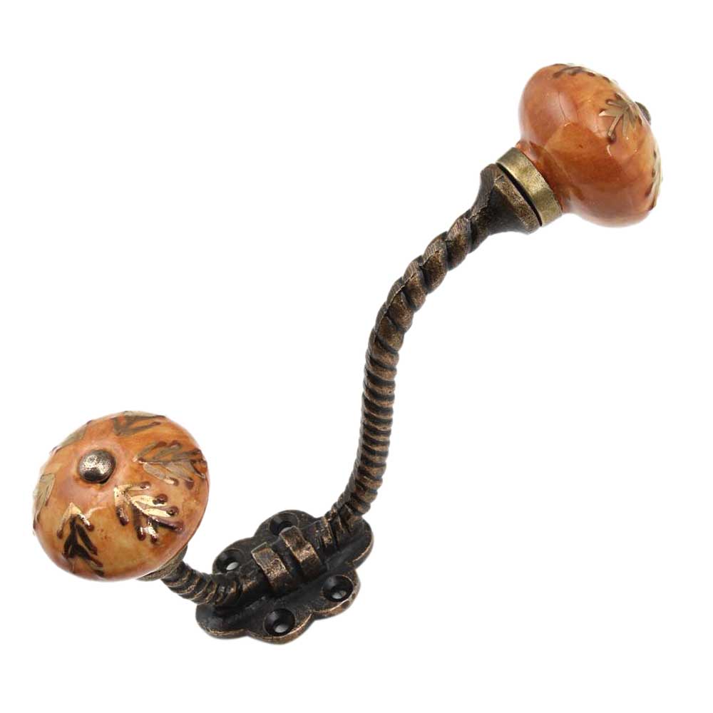 Brown Golden Leaf Ceramic Antique Rope Iron Hook