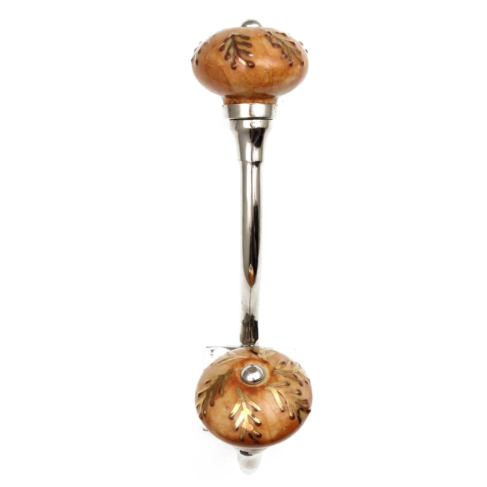 Brown Golden Leaf Ceramic Silver Iron Hook. When Put on Wall or Cabinet It Gives A Sturdy Look. This Hook is Strong Enough to Hold Your Cloths, Keys, Tea Cups, Coffee Mugs, Hand Towels etc.