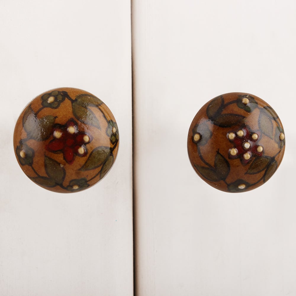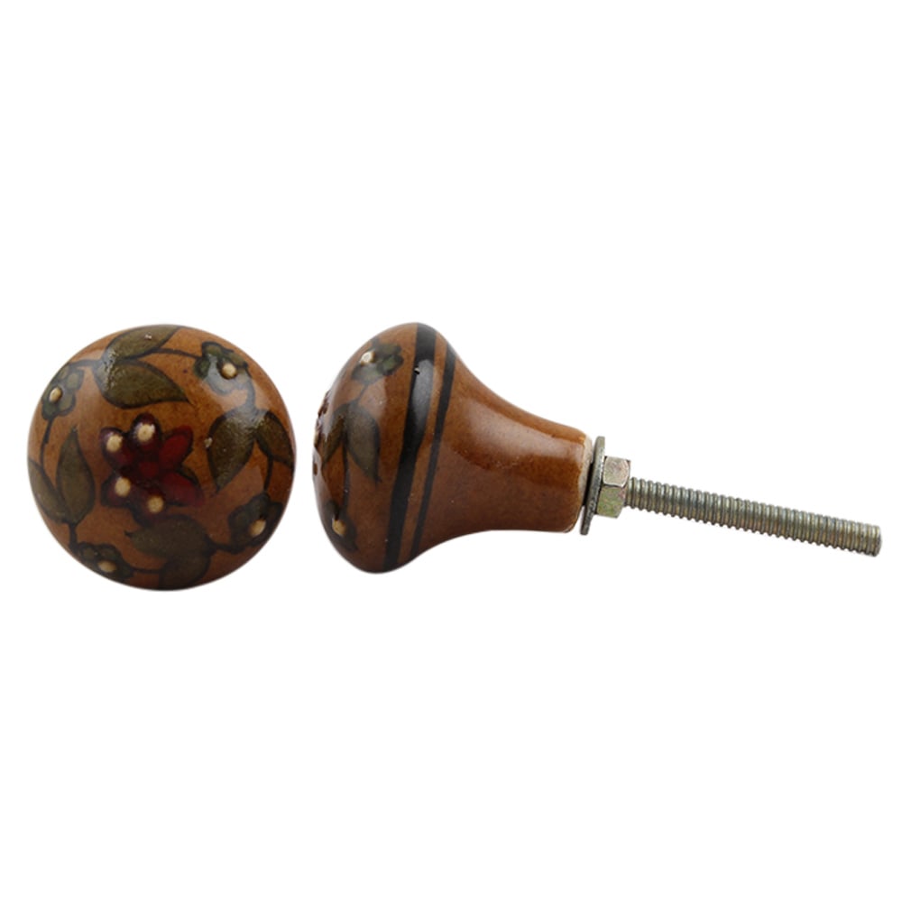 Brown Green Floral Leaf Bulb Ceramic Knob