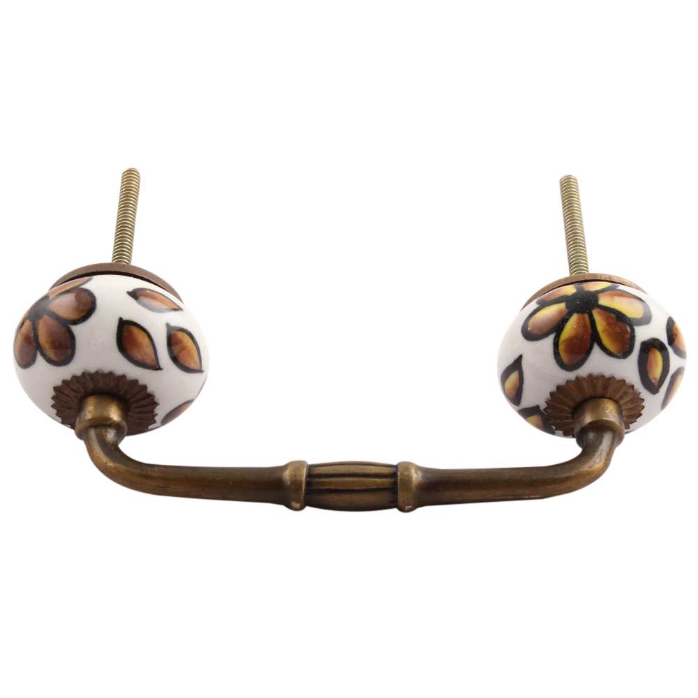 Brown Hibiscus Flower Ceramic Bridge Handle