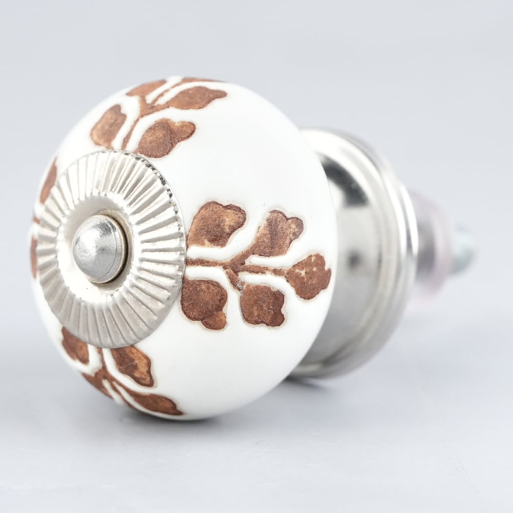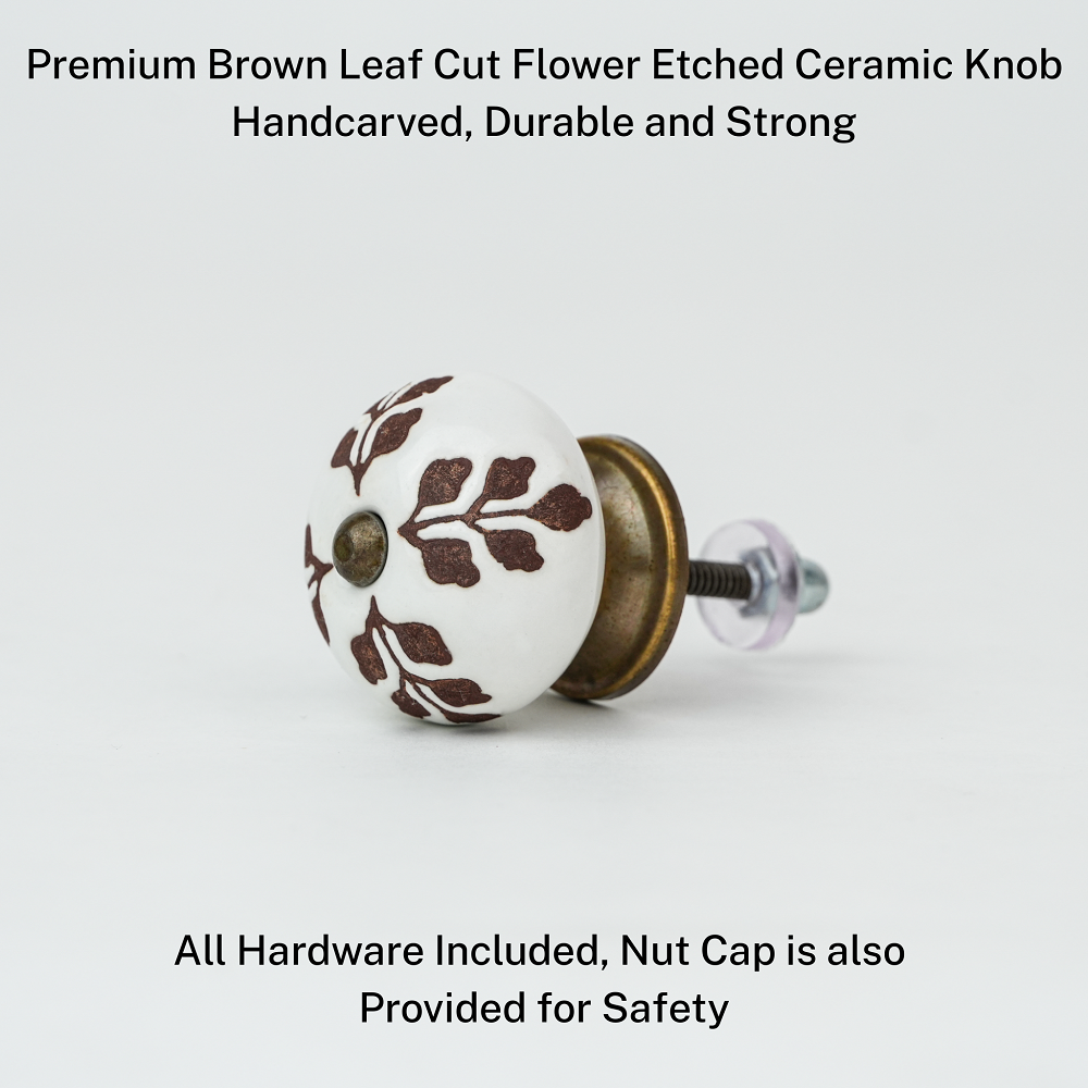 Each Brown Leaf Cut Flower Etched Ceramic Drawer Knob is carefully handcrafted with attention to detail. The etched design of leaves and flowers on the ceramic surface adds texture and depth, creating a striking visual effect. The earthy brown finish complements the delicate pattern, making this knob an elegant addition to any room in your home.