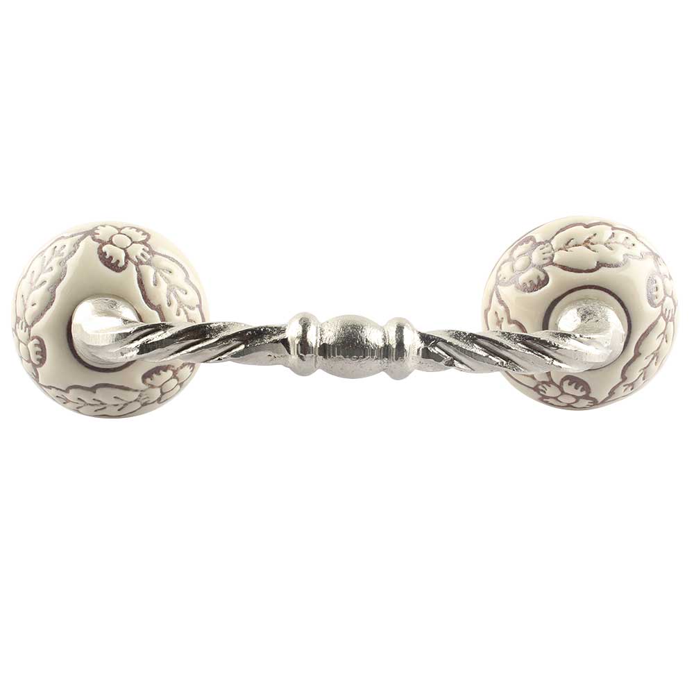 Brown Leaf Flower Etched Ceramic Cut Bridge Handle Online. Ideal for Drawer, Dresser, Cabinet, Wardrobe, Cupboard and Almirah etc.
