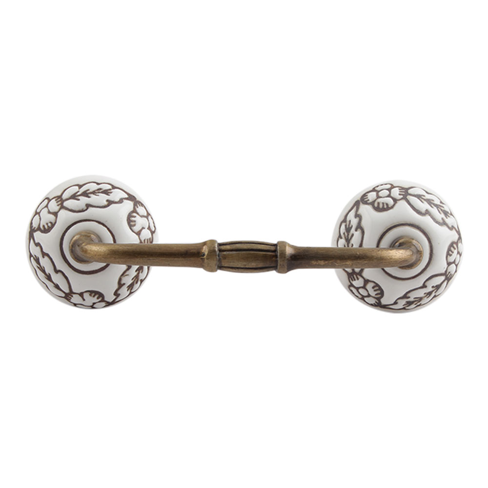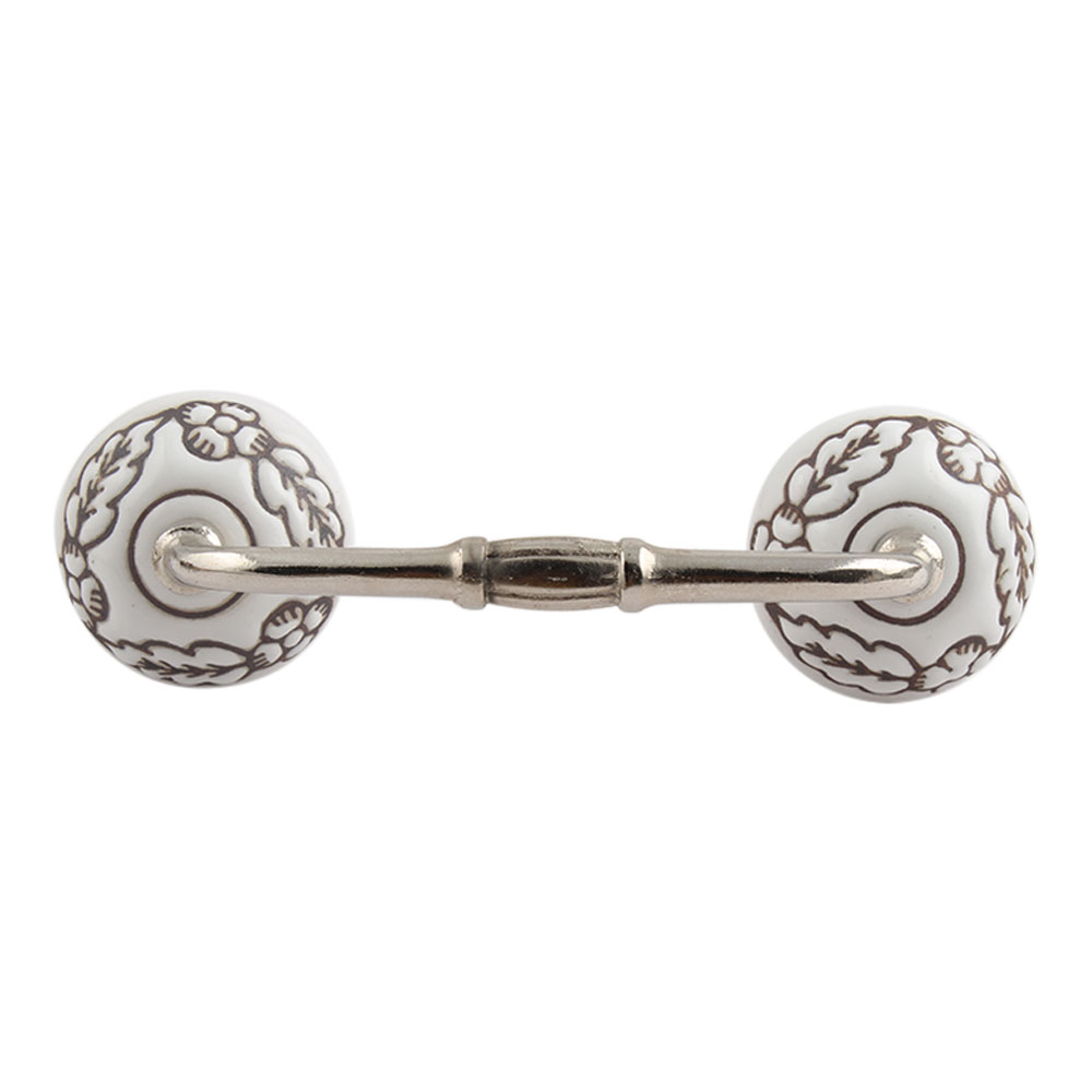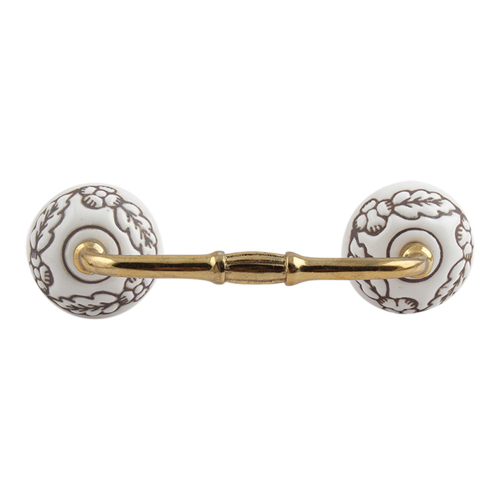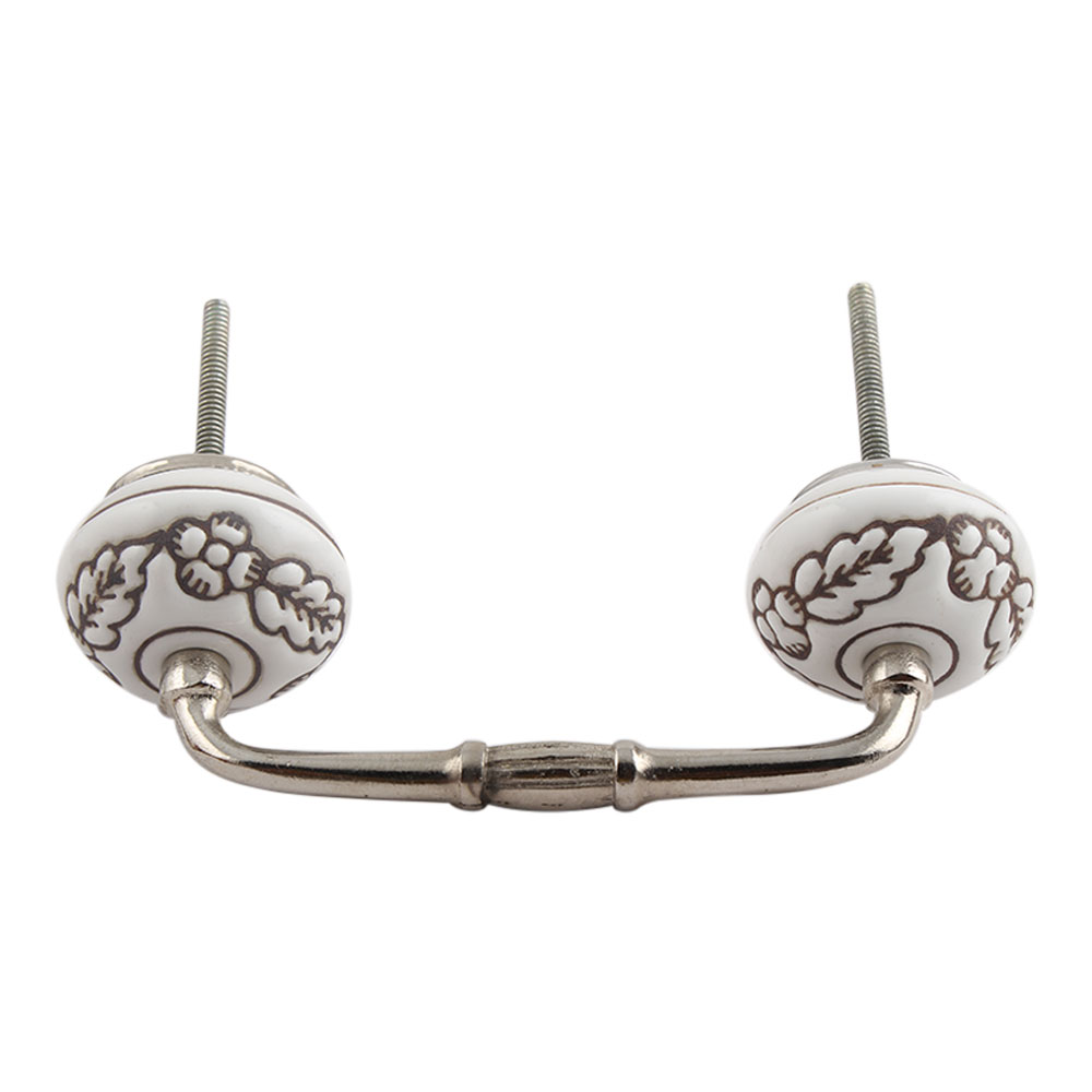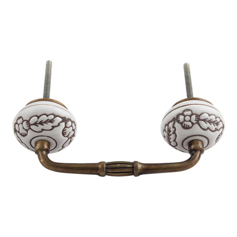 Brown Leaf Flower Etched Ceramic Floral Bridge Handle. Ideal for Drawer, Dresser, Cabinet, Wardrobe, Cupboard and Almirah.