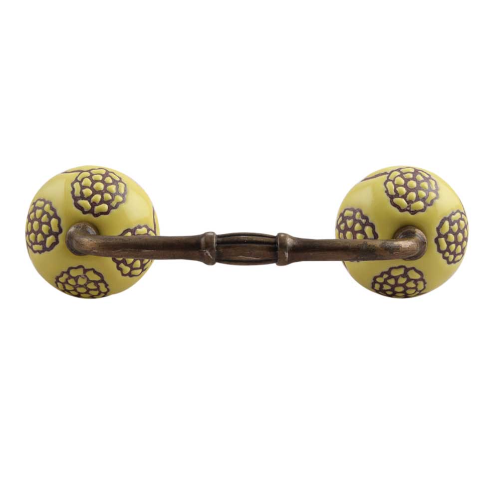 Brown Marigold Etched Ceramic Floral Bridge Handle. Ideal for Drawer, Dresser, Cabinet, Wardrobe, Cupboard and Almirah.