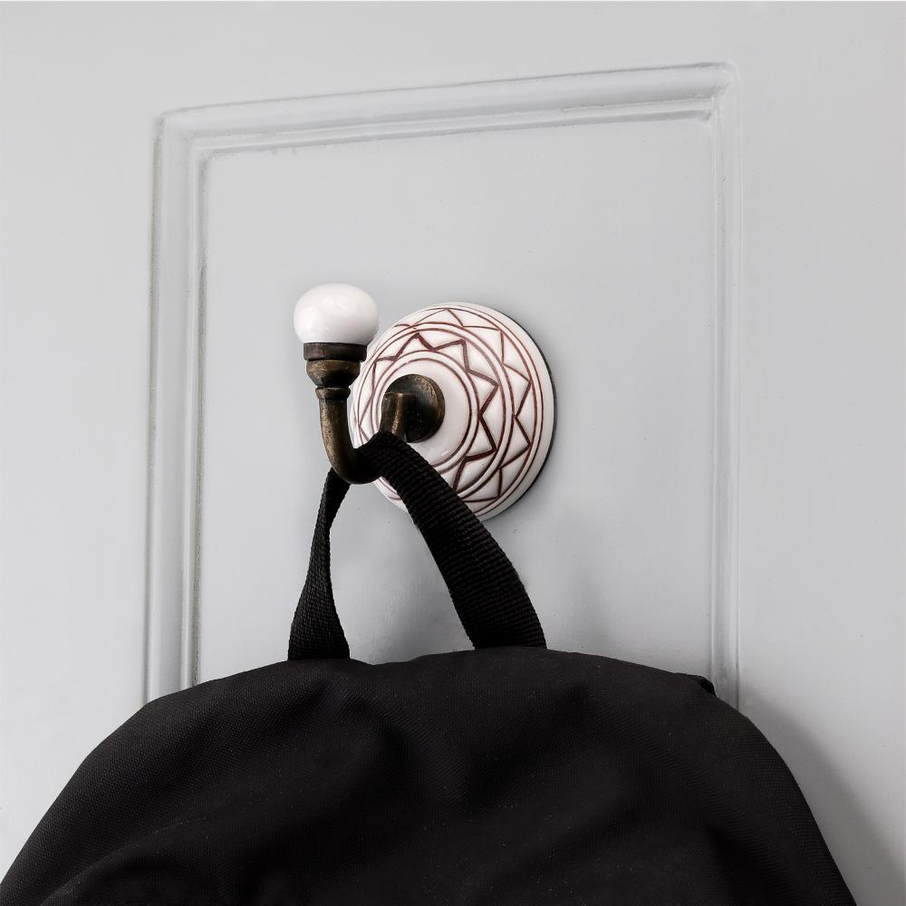 Indianshelf.com for bulk/wholesale orders.Indianshelf.us for personal purchases.The Brown Pattern Etched Ceramic Wall Hook is a beautifully crafted piece designed to blend both style and functionality seamlessly into your space. With its rich brown tone and intricate etched patterns, this wall hook brings a touch of vintage charm and contemporary elegance to any room. Ideal for hanging coats, hats, bags, or other accessories, it combines practical use with aesthetic appeal.