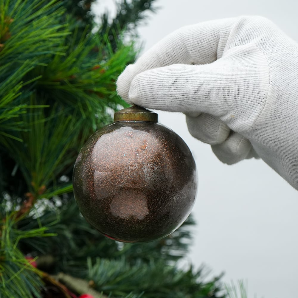• Brown Round Vintage Glass Christmas Ornament