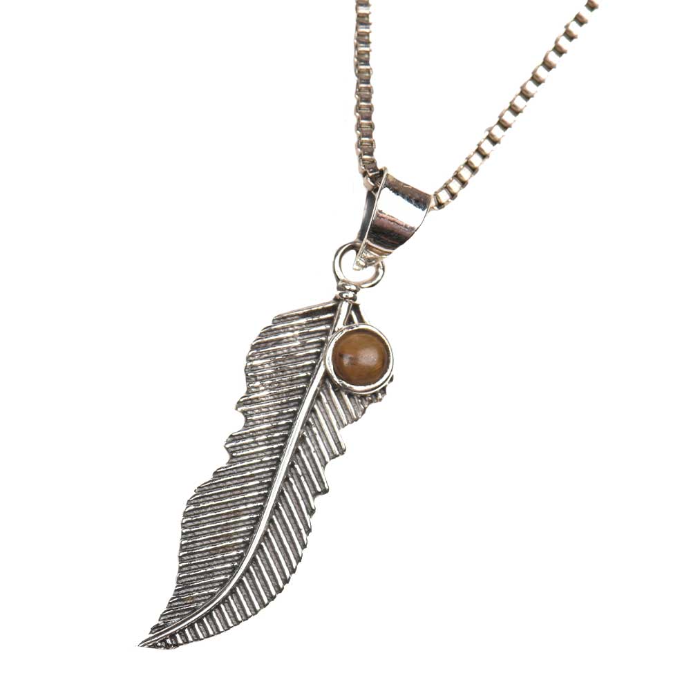 Brown Stone 92.5 Sterling Silver Feather Pendant