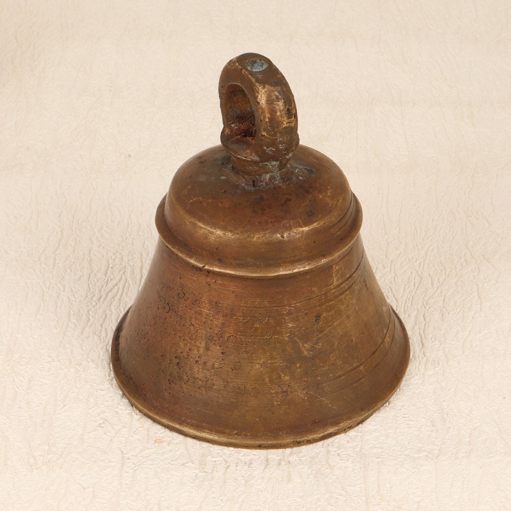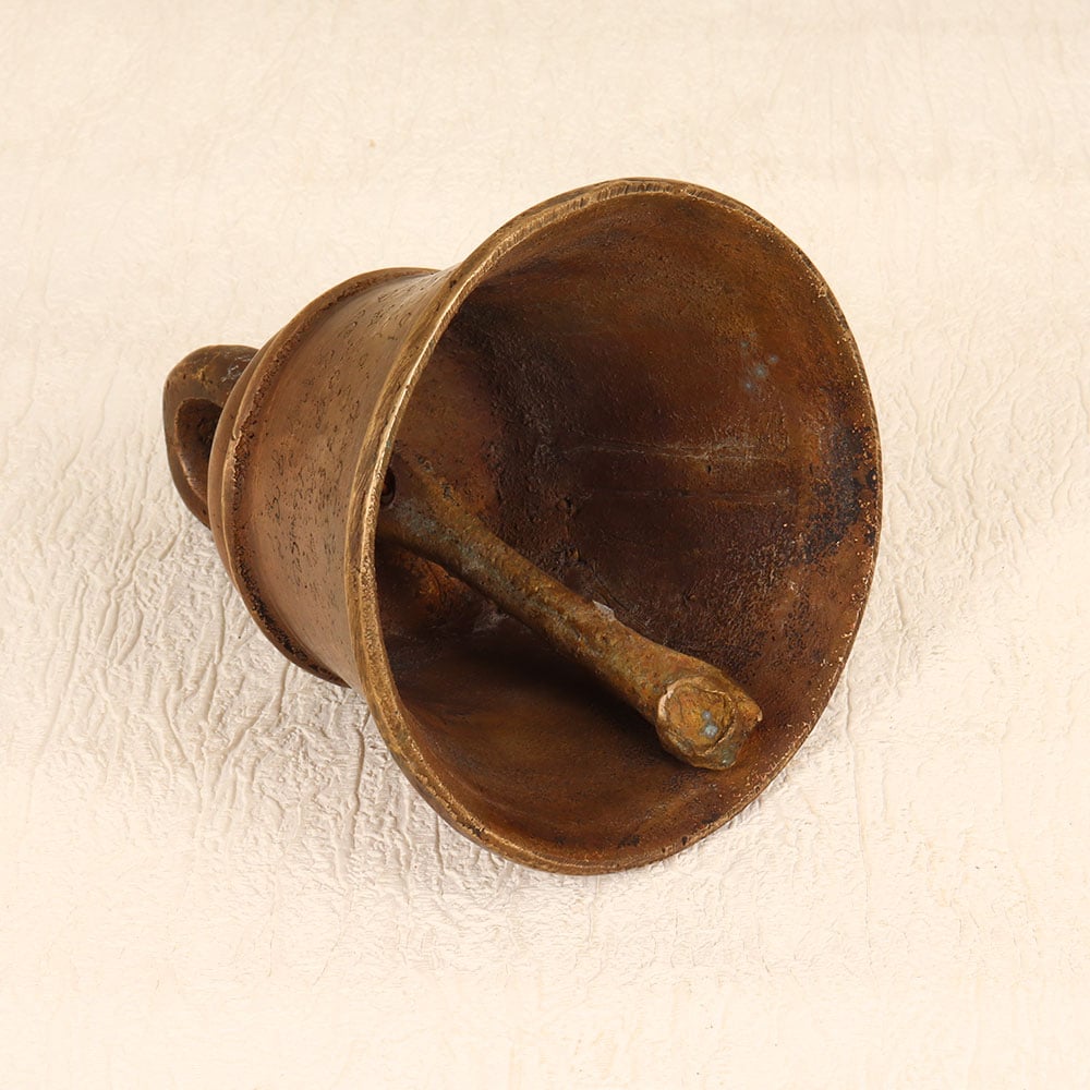 Decorate your spiritual space with this exquisite Vintage Bell Metal Temple Bell that is a testament to the craftsmanship of highly talented Indian artisans from Central India. Meticulously handmade from high-quality bell metal, this bell boasts a timeless antique brown finish that adds a touch of vintage charm. Designed with a convenient loop for hanging, it seamlessly integrates into temple or prayer room settings, creating a sacred ambiance. Versatile in its application, this bell is not limited to religious spaces - it can grace your home, office, restaurant, hotel, or cafe prayer room with its serene presence. Its ornate design and craftsmanship make it an ideal addition to any vintage collection. Whether for personal use or as a thoughtful gift, this temple bell adds a cultural touch to special, festive, or auspicious occasions.