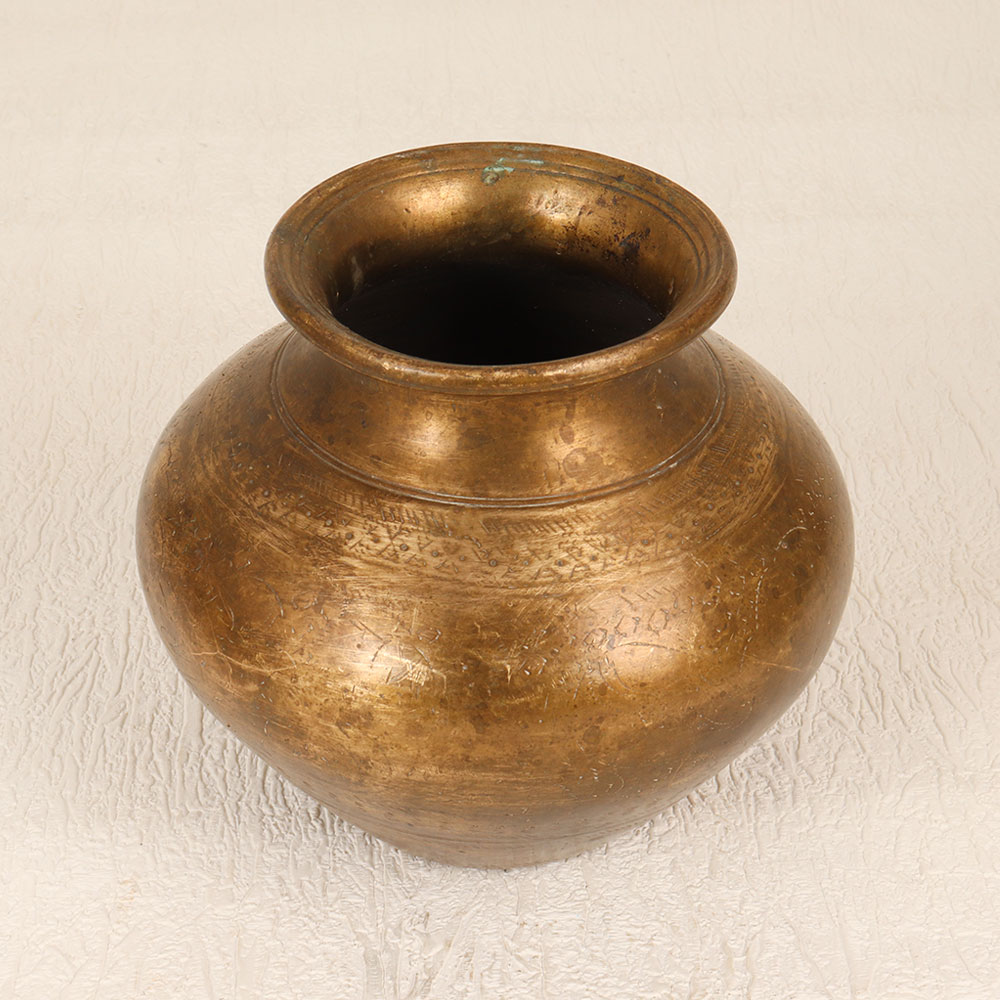 Enhance your spiritual space with this exquisite Vintage Brass Holy Water Pot which is a testament to South Indian artistry and craftsmanship. Handmade by highly talented Indian artisans, this holy water pot is a timeless piece that seamlessly blends antique aesthetics with functionality. Crafted from high-quality brass, it boasts an elegant antique brown finish, adding a touch of old-world charm to any setting. Ideal for prayer, rituals, and havans, this pot serves as a sacred vessel to hold holy water. Its versatile design allows it to grace the ambiance of homes, offices, restaurants, hotels, or cafes, enhancing the atmosphere of prayer rooms. Beyond its religious purpose, this pot can double as an indoor flower pot, infusing your space with a unique and vintage allure. A true collector's item, this vintage piece is a thoughtful gift for loved ones on special, festive, or auspicious occasions.