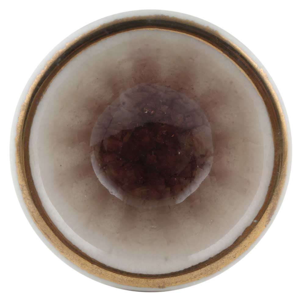 This ceramic knob features a rich brown color with a wheel-like design, creating a subtle yet impactful visual. The silver fitting enhances its aesthetic appeal, making it not only a functional hardware piece but also a stylish decorative accent for any room. Perfect for enhancing both traditional and contemporary furniture, it brings a sophisticated yet warm touch to your living spaces.