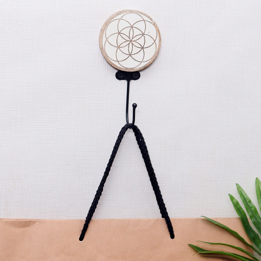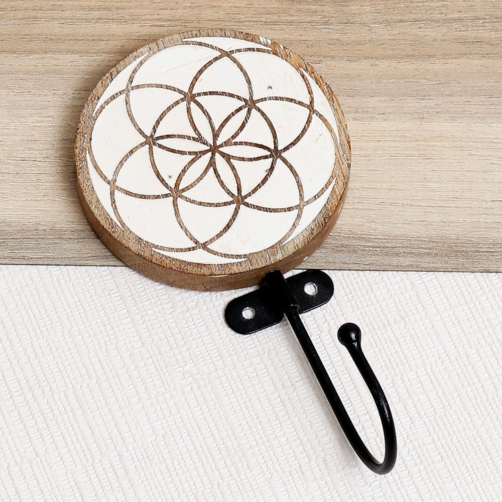 The abstract carved pattern gives this hook a sculptural look, blending utility with wall art.