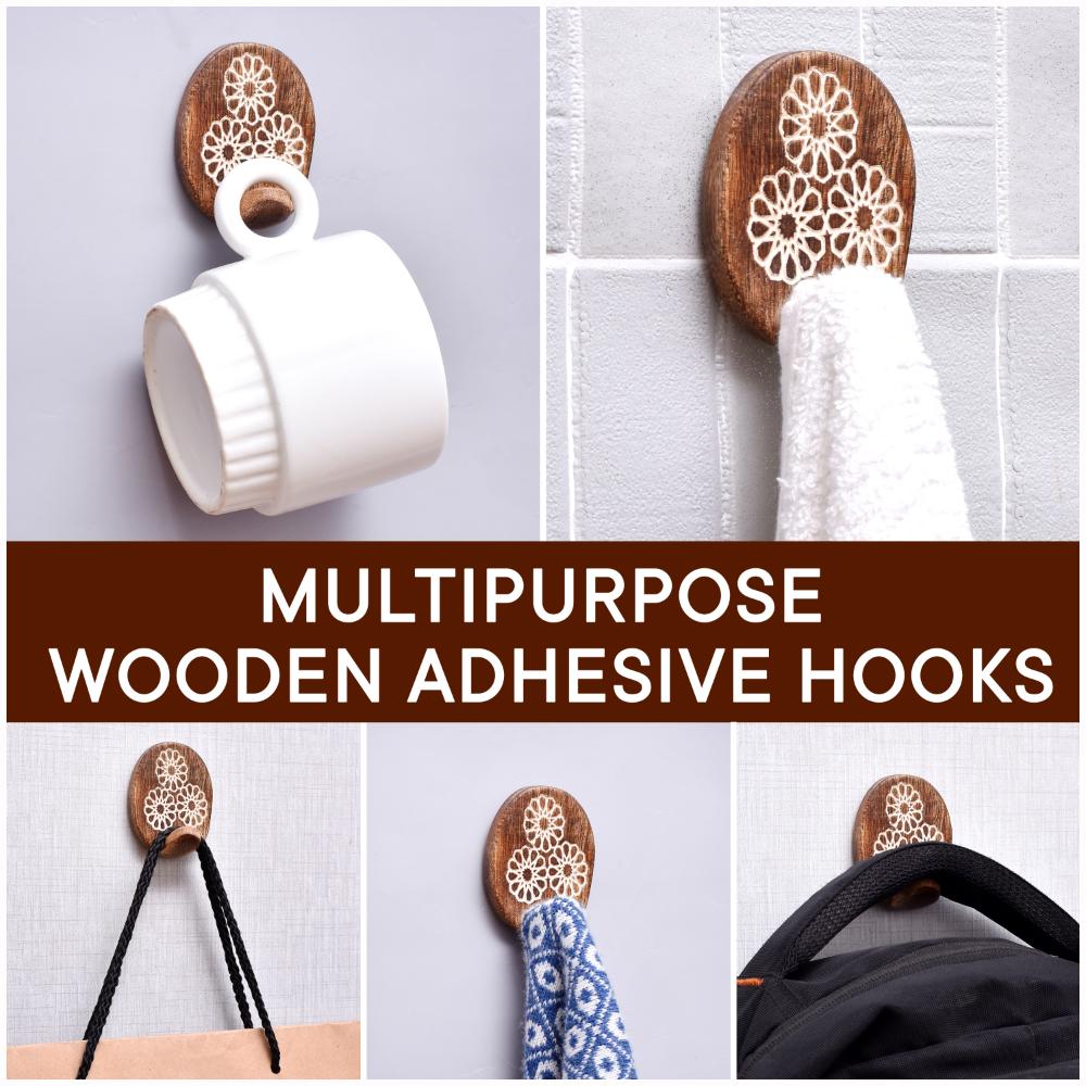 1. Damage-Free Hanging 2. Natural Wooden Look 3. Easy to Install and Remove 4. Hygienic and Easy to Clean For best results, press the hook firmly and allow it to set for 24 hours before hanging anything.
