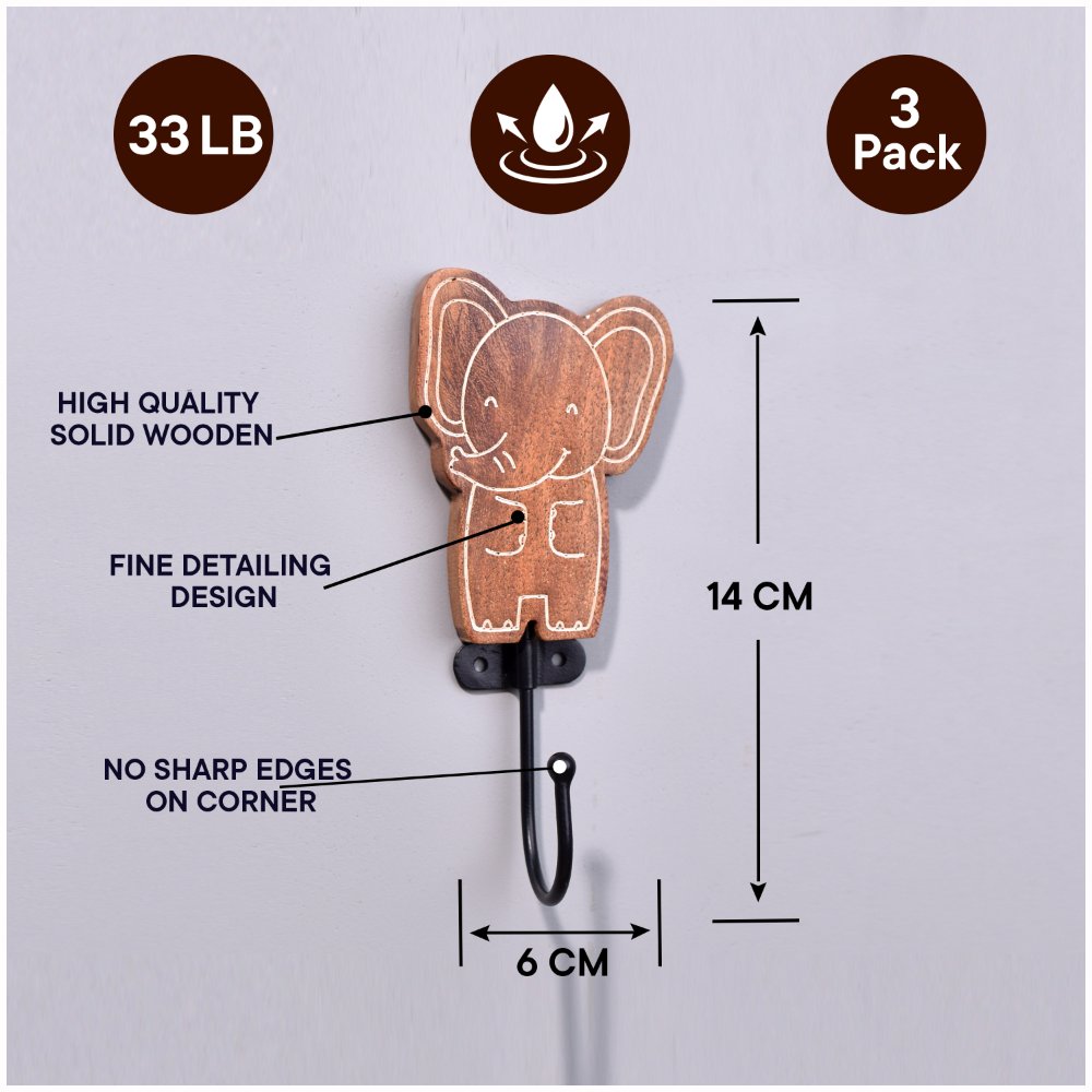 These elephant-inspired hooks are not just decorative pieces but are also designed to offer practical storage solutions for your home. The sturdy wooden construction ensures that these hooks can support your everyday items, while the intricate elephant design adds an exotic flair to your space. With their blend of functionality and beauty, these hooks provide the perfect balance of charm and utility.