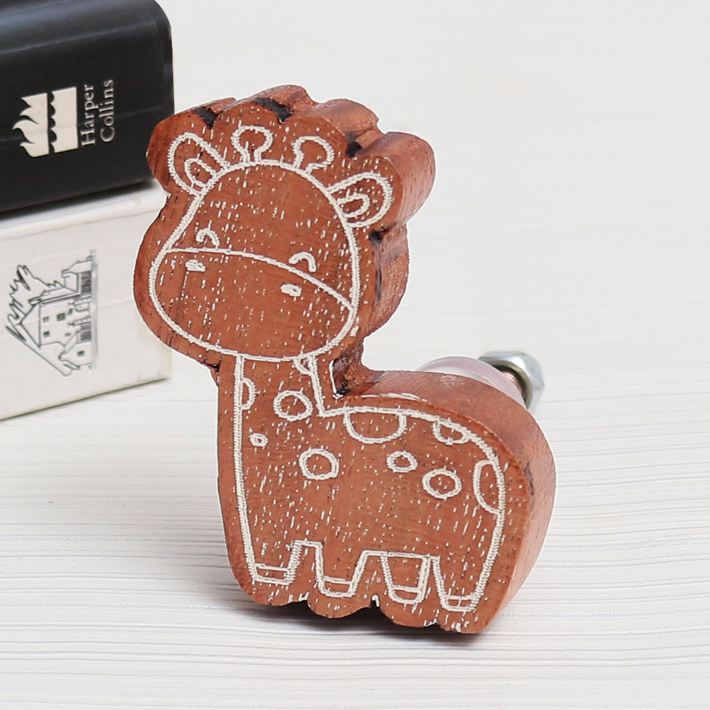 This dresser knob is not mass-produced; each one is individually handcrafted with attention to detail. The unique giraffe shape and the intricate wood carvings ensure that no two knobs are exactly alike, making them a one-of-a-kind addition to your furniture. The natural wood grain adds character and texture to the knob, enhancing its organic charm.