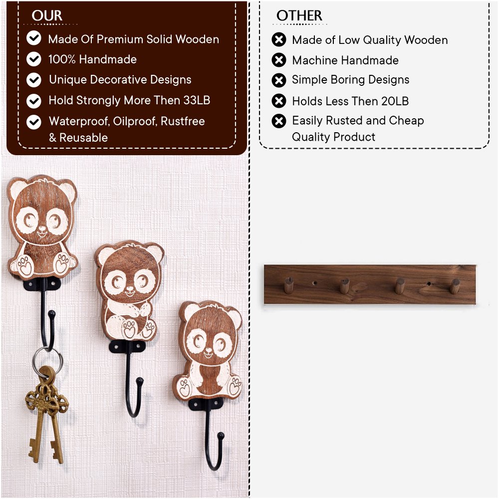 1. Functional and Kid-Friendly 2. Decorative Panda Design 3. Reliable Daily Use 4. Natural & Antimicrobial Group a few panda hooks together at different heights for a playful wall display that doubles as functional storage.
