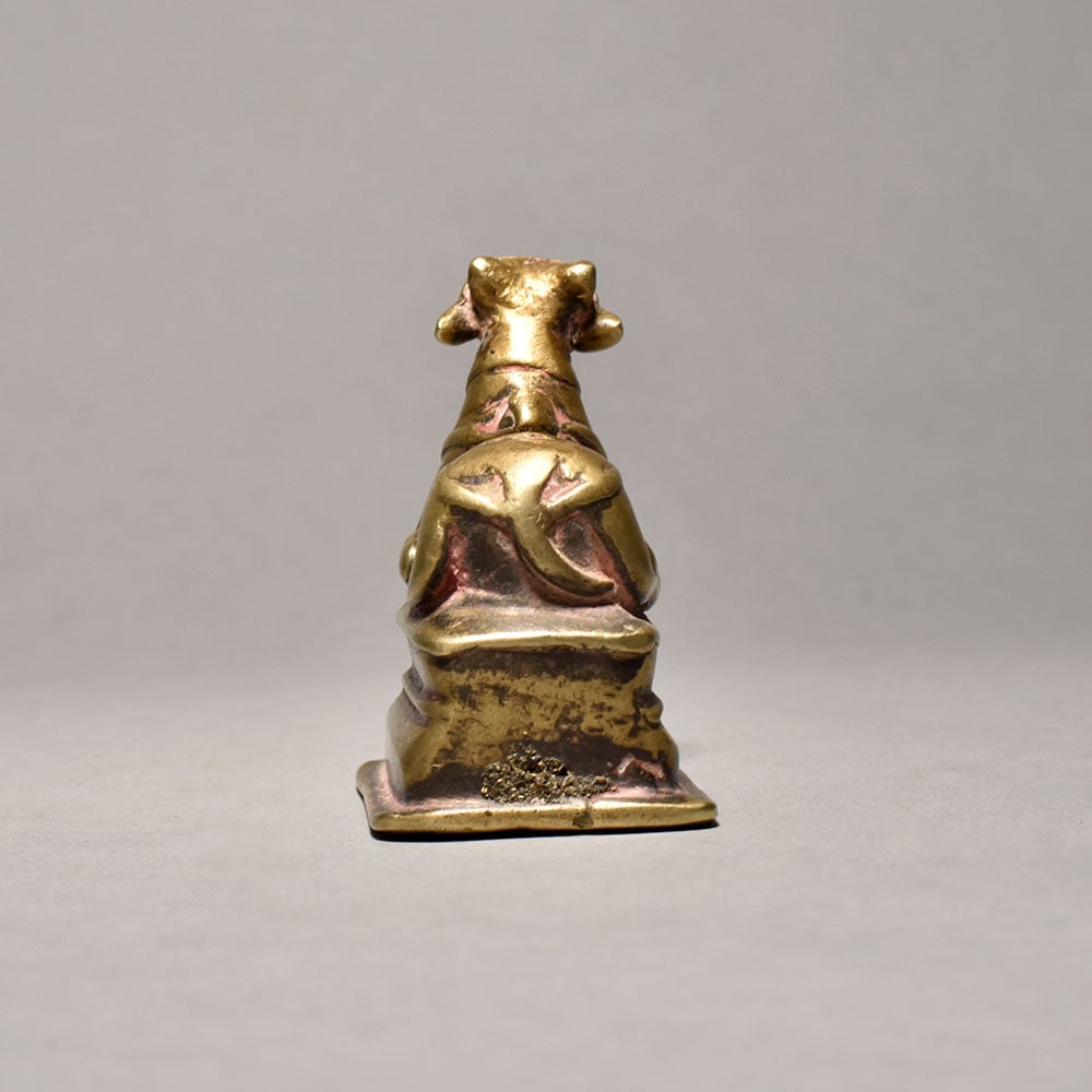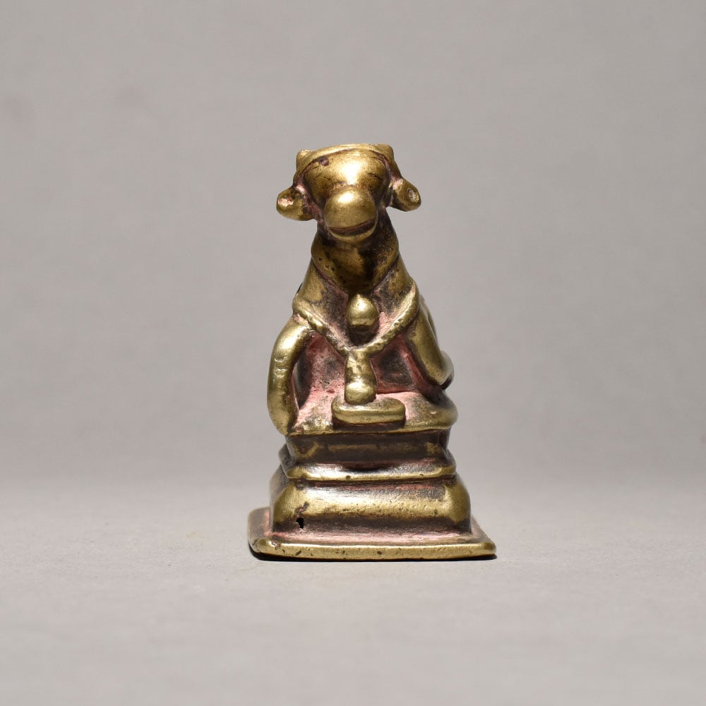 Commanding a presence in any room, this brass Nandi bull statue is a stunning addition to homes, offices, or spiritual sanctuaries. Its majestic form serves as a striking focal point, inspiring a sense of awe and reverence. Display this regal sculpture to infuse your space with the timeless elegance and spiritual significance of the sacred bull, the loyal mount of the Hindu deity Shiva. Whether you're a collector of fine art, a devotee of Hindu traditions, or simply someone who appreciates exquisite craftsmanship, this brass Nandi bull is a must-have piece that will captivate and inspire all who behold it.