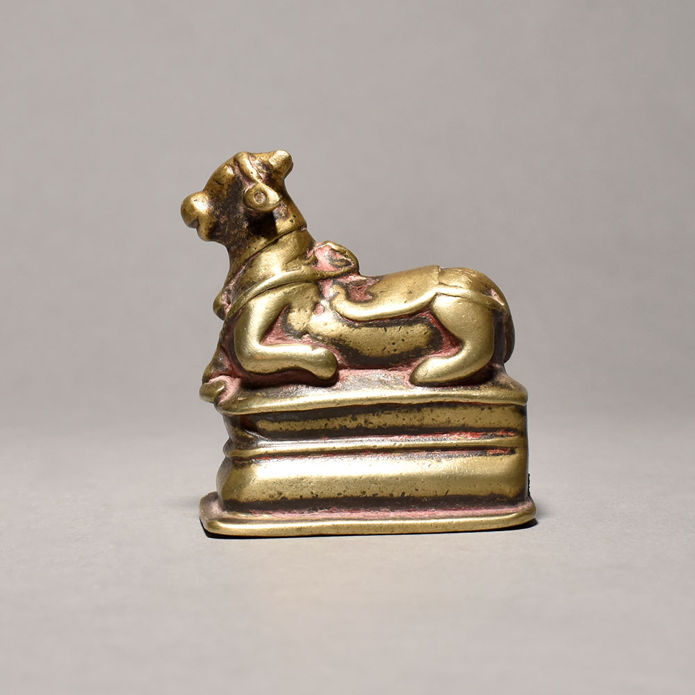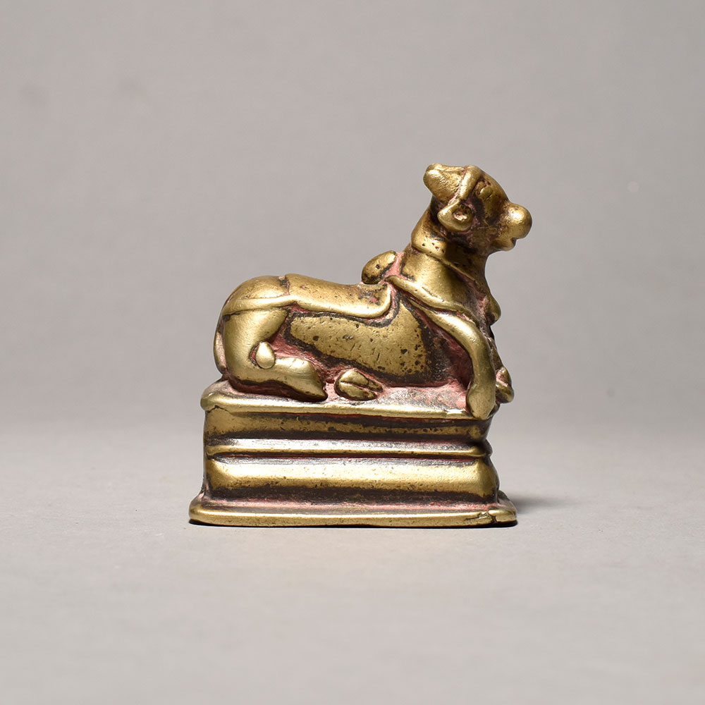 - Depicts the Nandi bull in a serene, meditative pose atop a pedestal Sitting