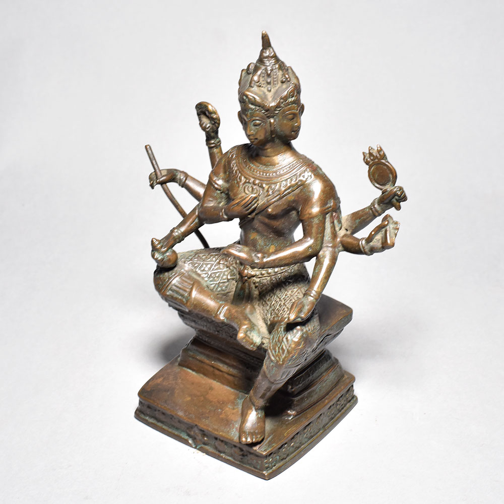 Elevate your space and spirit with this breathtaking Burmese art god figure. Meticulously crafted from gleaming white metal, this piece showcases the unparalleled artistry of Myanmar's most revered sculptors. Each intricate detail, from the serene expression to the ornate accents, has been lovingly rendered to transport you to the heart of ancient Burmese culture. Whether displayed prominently in your home or used as a tool for meditation, this captivating figure will infuse your space with a sense of tranquility and wonder. Its impressive stature makes it a true focal point, commanding attention and sparking curiosity in all who behold it. Embrace the rich history and spiritual essence of Myanmar by welcoming this magnificent god figure into your life. Let it inspire you to connect with the timeless wisdom of the East and cultivate a deeper appreciation for global artistic traditions.
