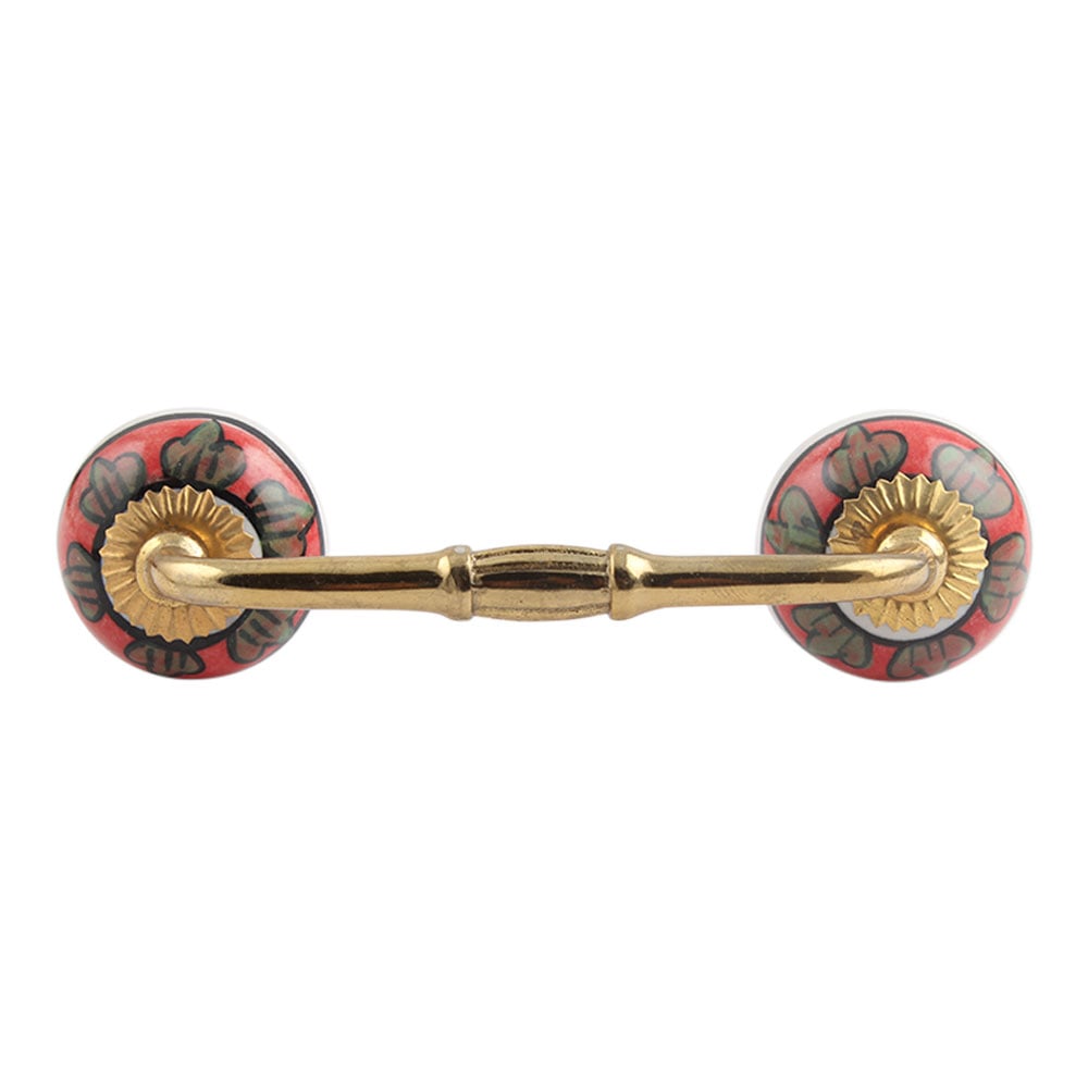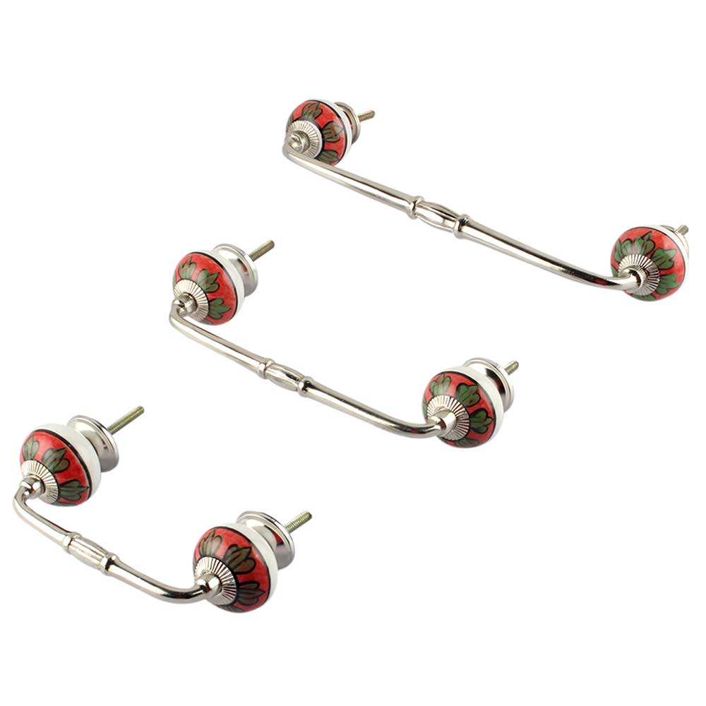 Caladium Bicolor Ceramic Bridge Handle. Ideal for Drawer, Dresser, Cabinet, Wardrobe, Cupboard and Almirah.