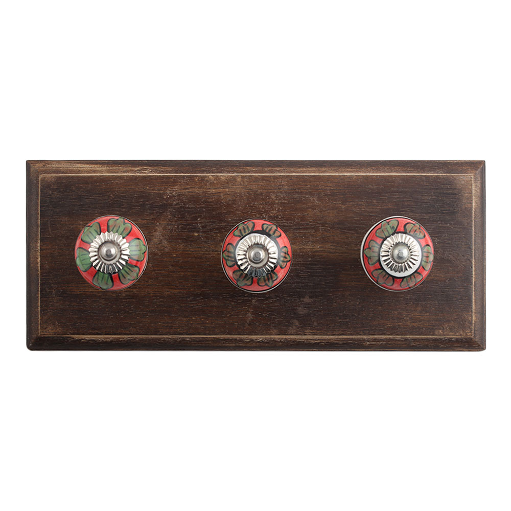 Caladium Bicolor Ceramic Wooden Hook. A Perfect Complement to the Soft Tone of the Wood are these White Traditional Hat Coat Hook Made of Genuine Porcelain and Brass. It can be use to Hang Jewellery, Leashes, Towels, Scarves, Light Weight Sweaters, Caps Etc.