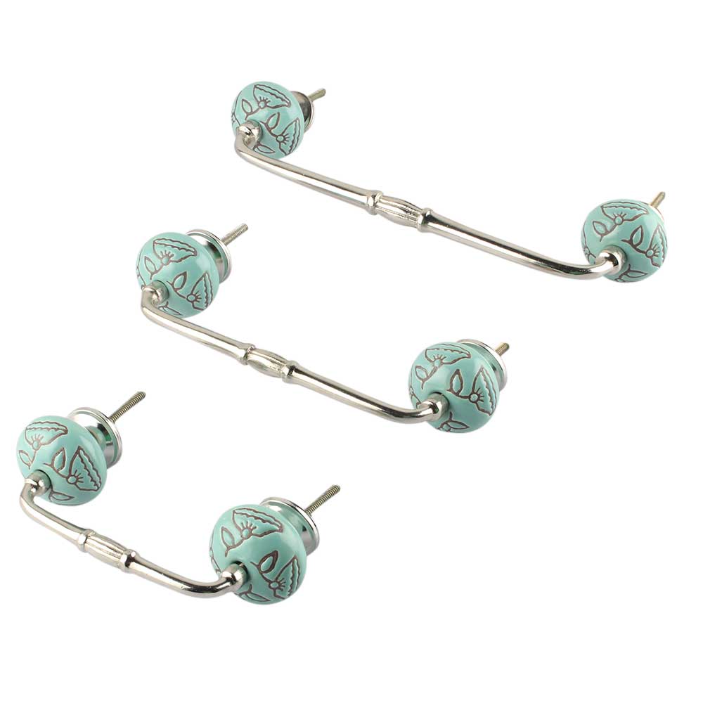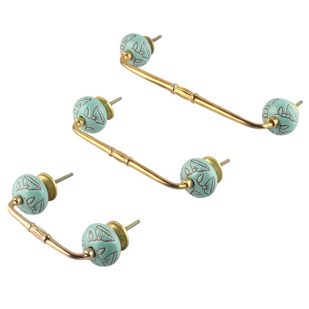 Calla Lily Brown Etched Ceramic Bridge Handle. Ideal for Drawer, Dresser, Cabinet, Wardrobe, Cupboard and Almirah.