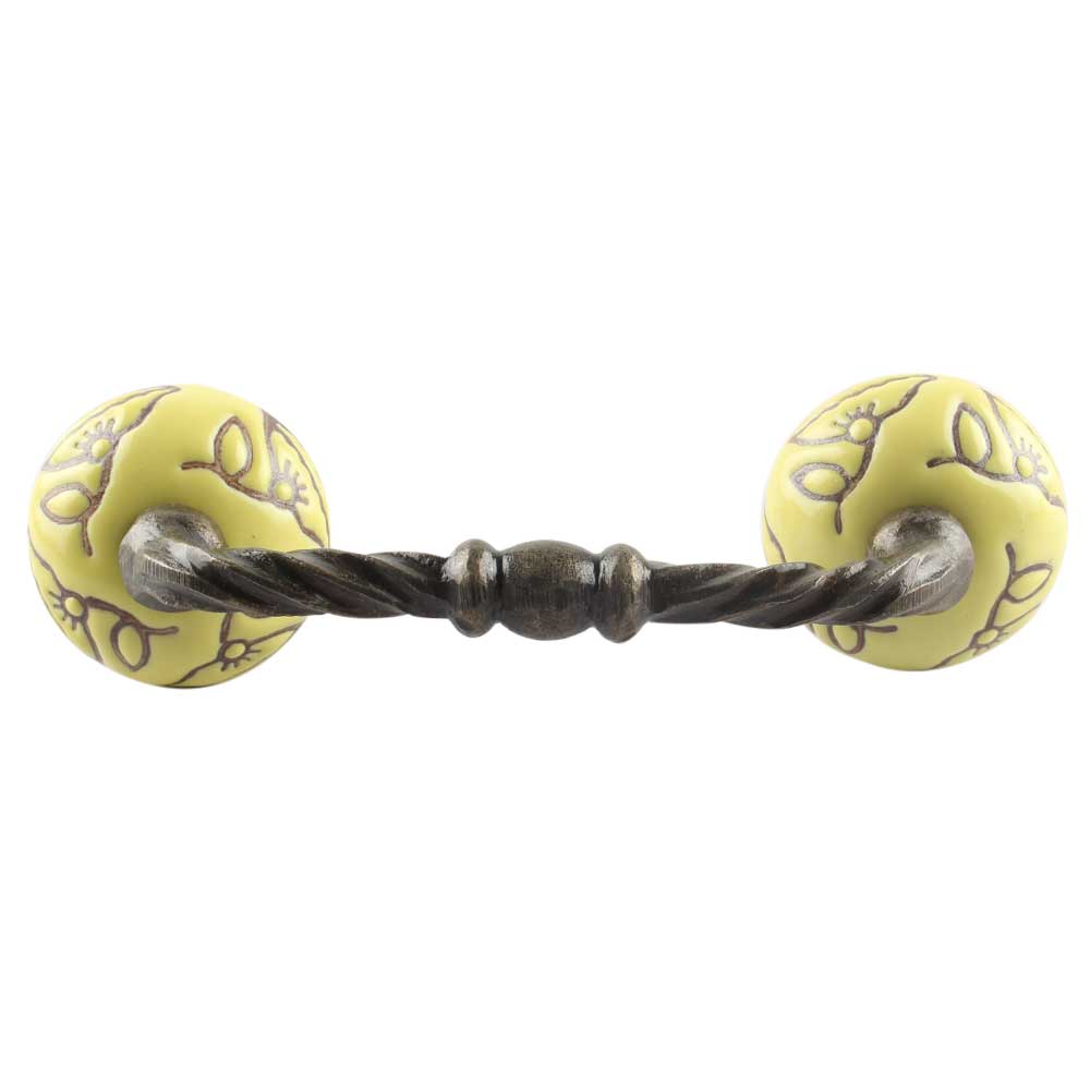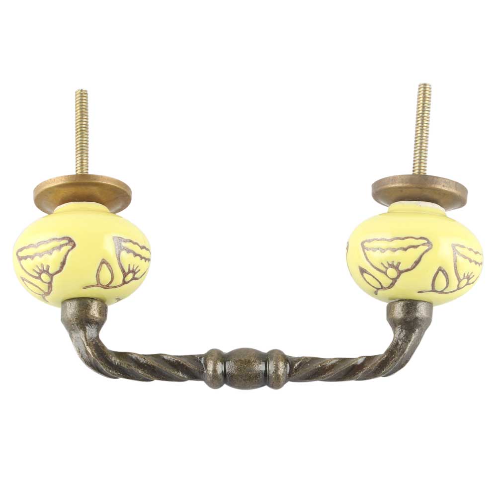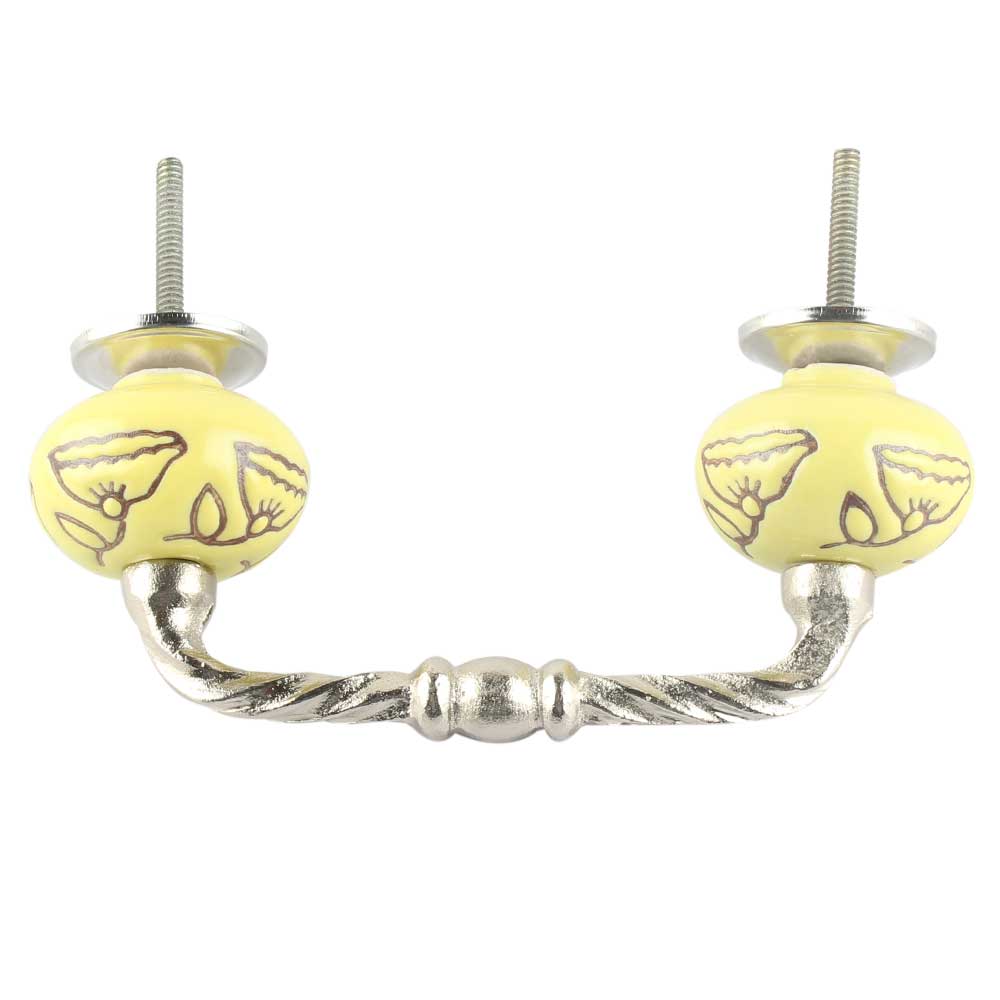 Calla Lily Brown Etched Ceramic Cut Bridge Handle in Yellow. Ideal for Drawer, Dresser, Cabinet, Wardrobe, Cupboard and Almirah etc.