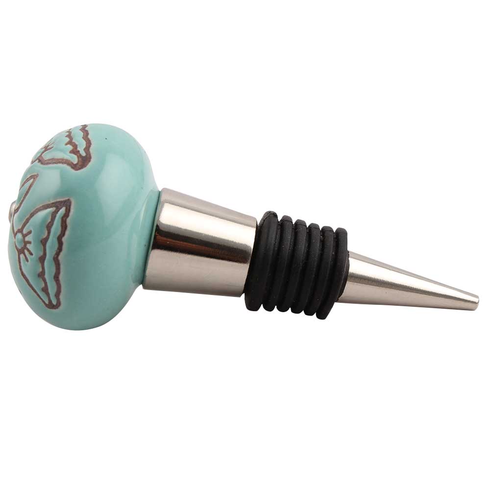 Calla Lily Brown Etched Ceramic Wine Stopper.zinc alloy wine bottle stopper with attractive Jute Bag Packaging.