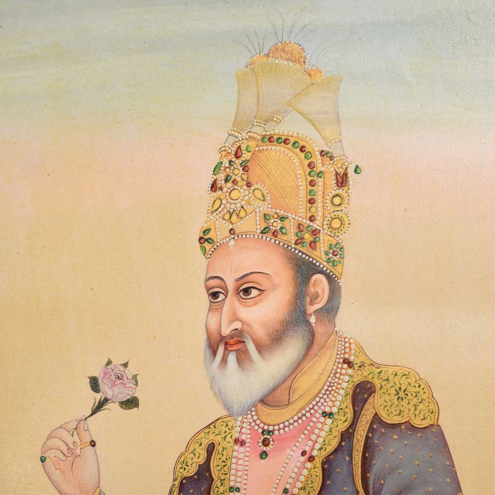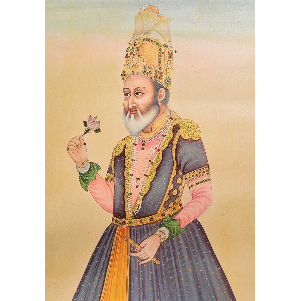 • Canvas Mughal Portrait of Emperor Shah Jahan Holding A Flower