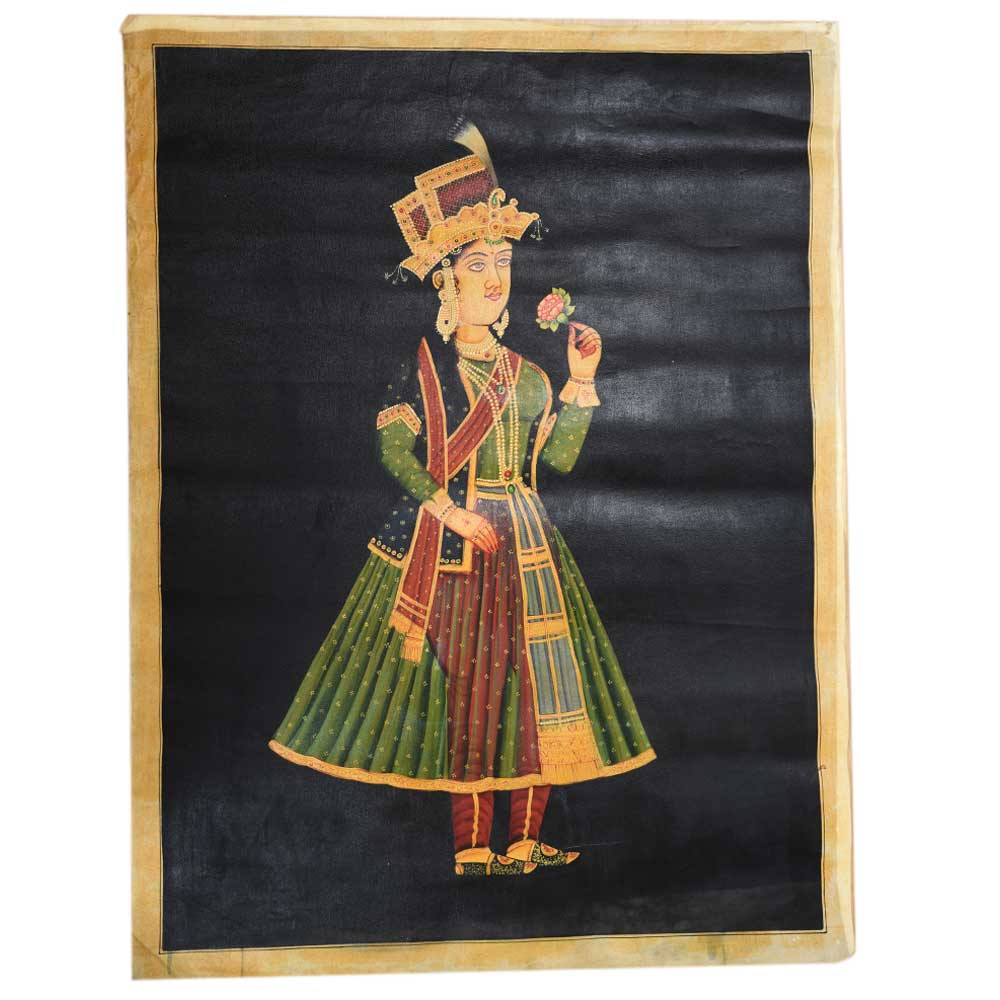 This Canvas painting of Mughal queen Mumtaz mahal is an old rare art and will adorn any decor and is ideal for display, collection and gifting purpose.