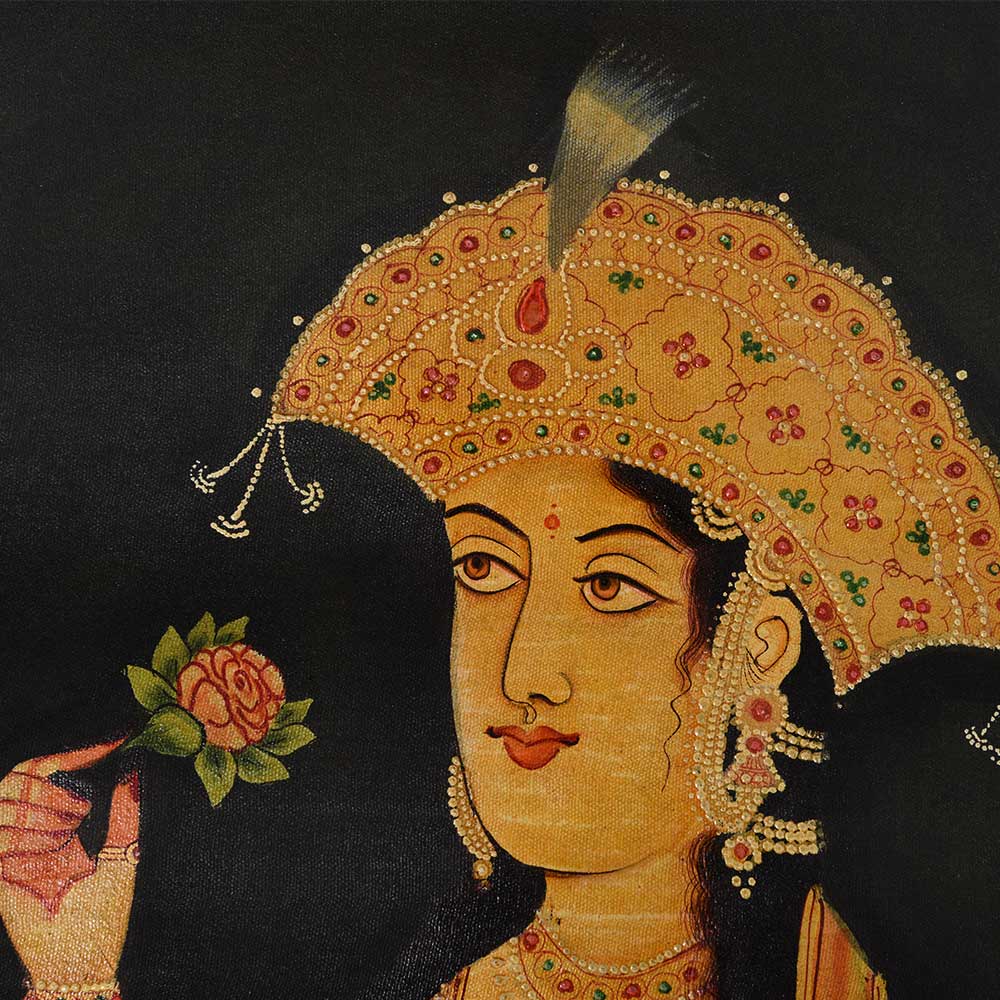 • Canvas Painting Or Sketch Of Mughal Princess Smelling A Rose