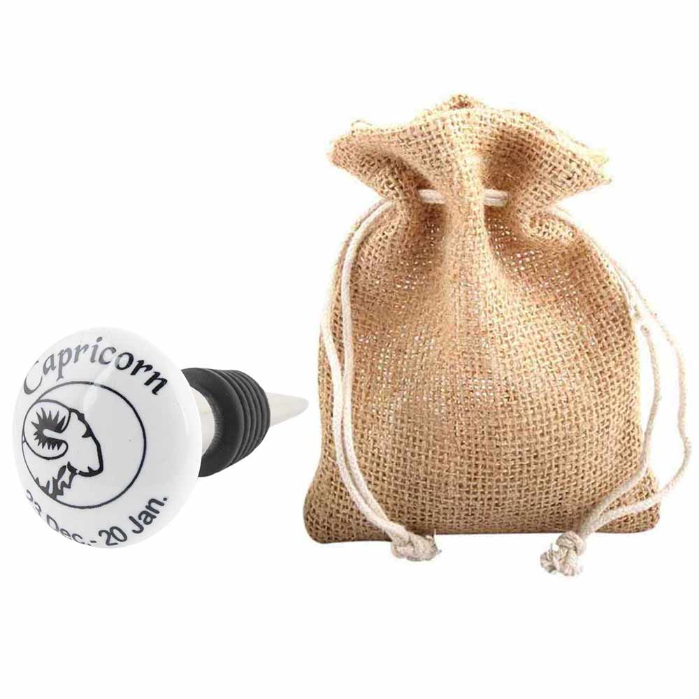 Capricorn Flat Ceramic Wine Bottle Stopper. Zinc Alloy Wine Bottle Stopper with Attractive Jute Bag Packaging.