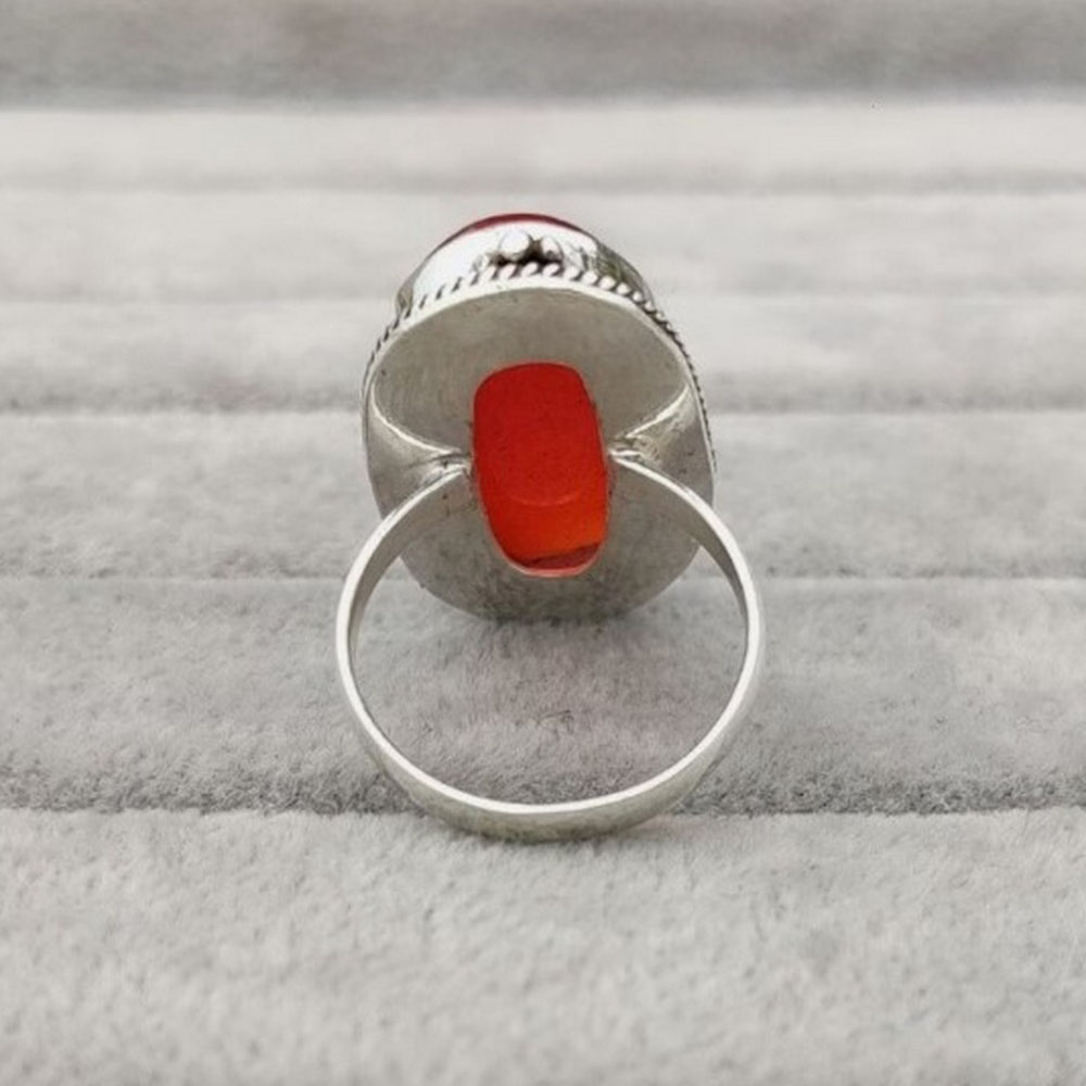 Treasure the allure of our carnelian cabochon 925 sterling silver ring handmade boho jewelry, where natural carnelian cabochon, 925 sterling silver and boho come together to create a earthy elegance. This ring is for nature lovers, each piece reflecting individuality and care. Packed & quality-checked by Indianshelf.