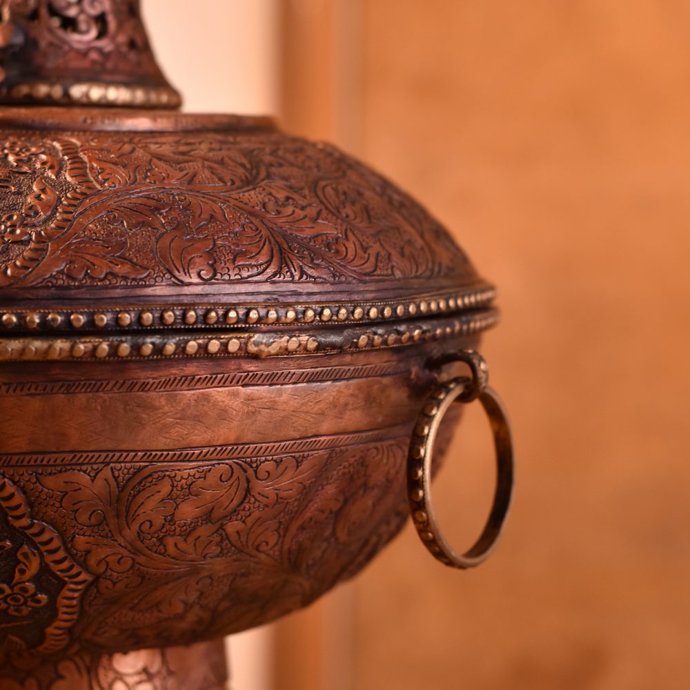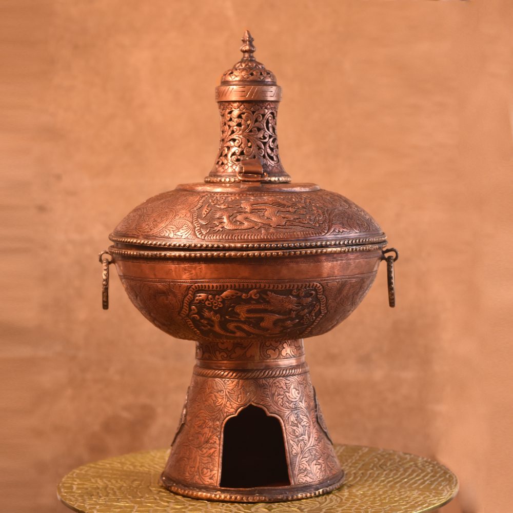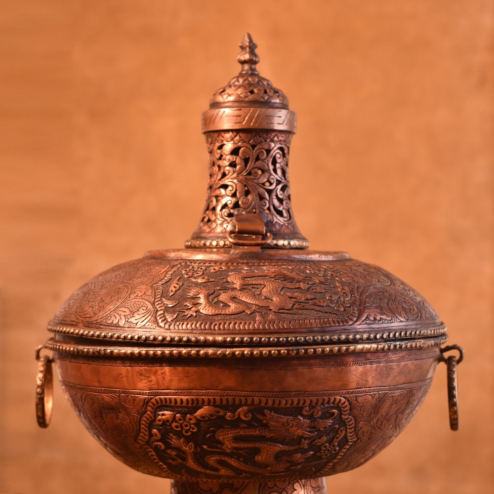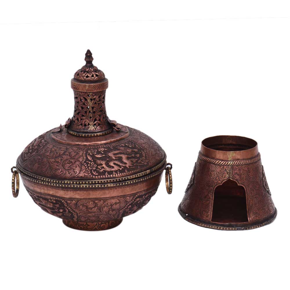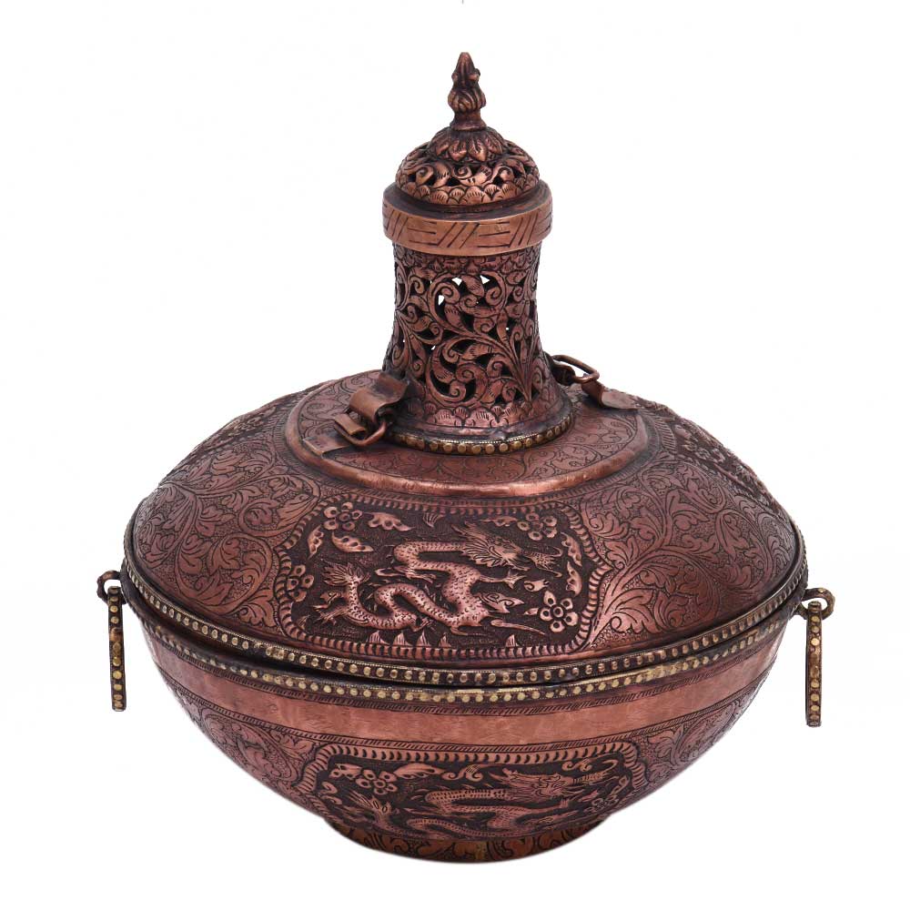 • Carved Brass Chinese Candy Serving Bowl In Copper Finish
