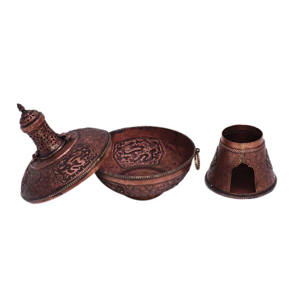 Carved Brass Chinese Candy Serving Bowl In Copper Finish