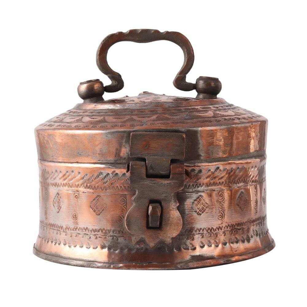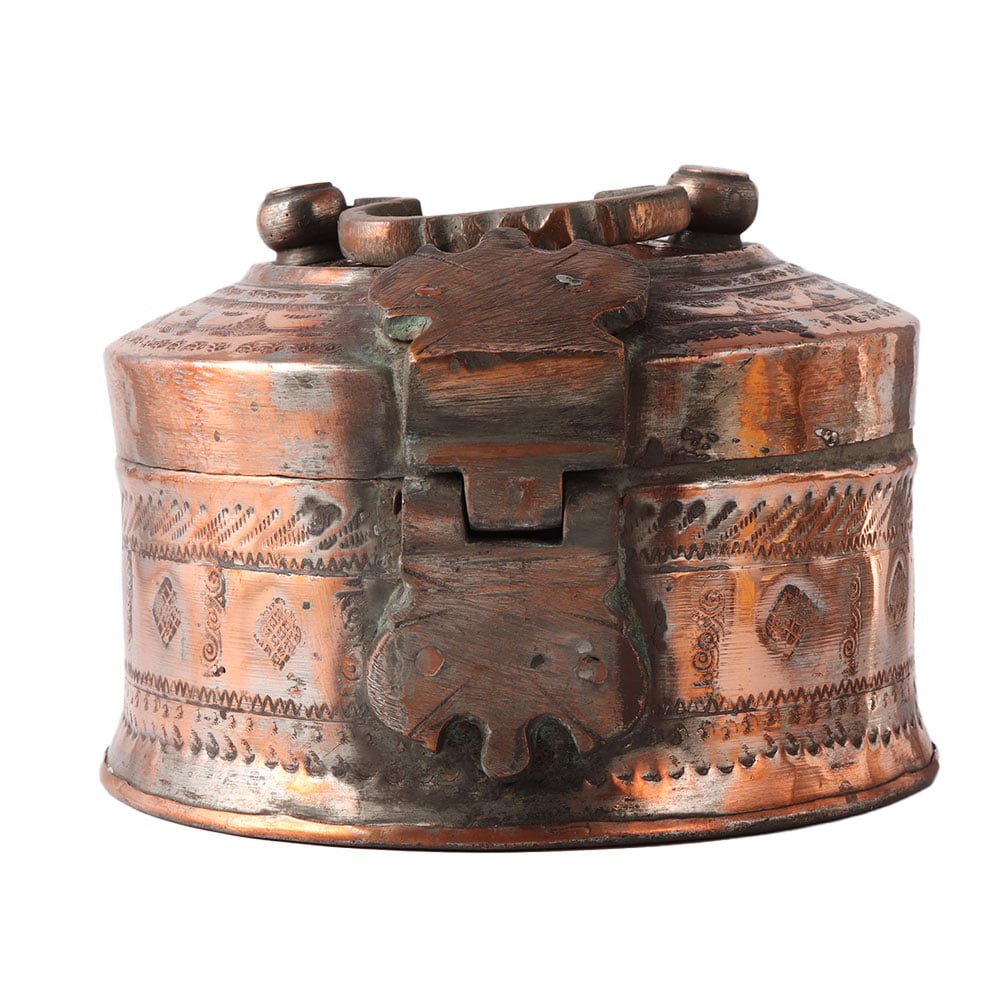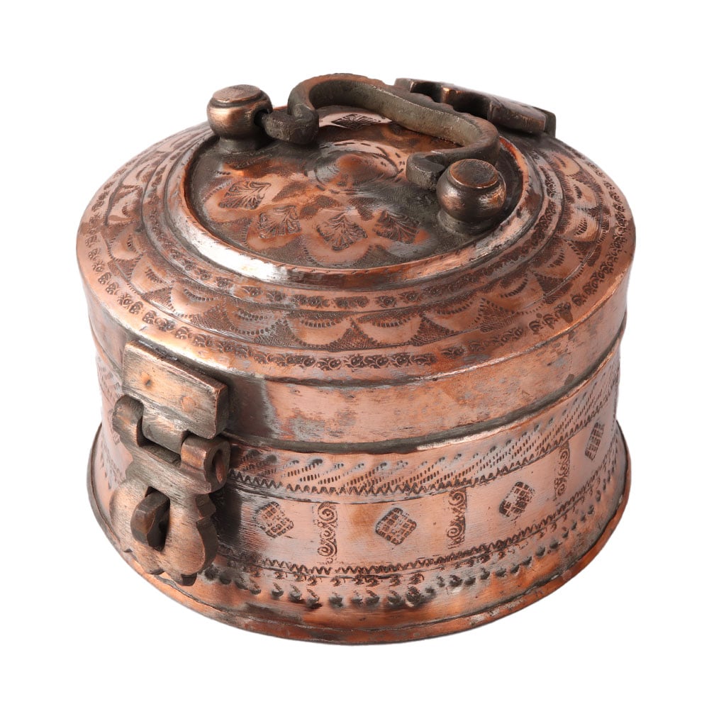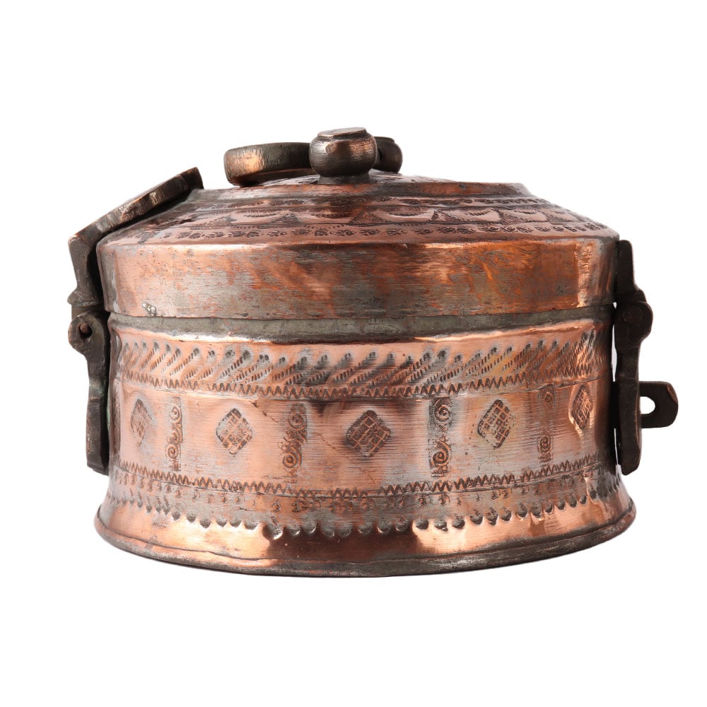 Nothing beats the carved Copper unique design circular storage box's versatile charm and beauty. The item is a sophisticated and timeless addition to your home decor projects. It's also a great balcony and garden decoration. You can use this Copper unique design circular storage box to store your knickknacks or as decorative artwork. The item would make an excellent gift for a history buff.