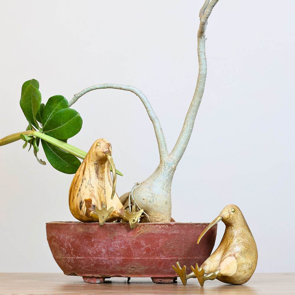 Bring a touch of whimsical nature to your home with this pair of kiwi bird sculptures, hand-carved from natural mango wood and accented with brass beaks and feet. Their organic shapes and warm wood finish exude rustic charm, appealing to decorators, bird lovers, and unique gift seekers alike. Packed & quality-checked by Indianshelf.
