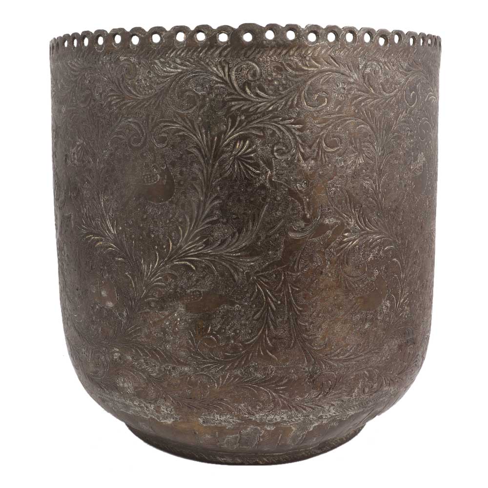 Rare u shaped brass planter pot engraved with leafy vines design with decorative scalloped edge made by the expert craftsmen of India. Home decoration, lawn party decoration , indoor as well as outdoor decoration, stage decoration, Special gift for near and dear ones on special occasions.