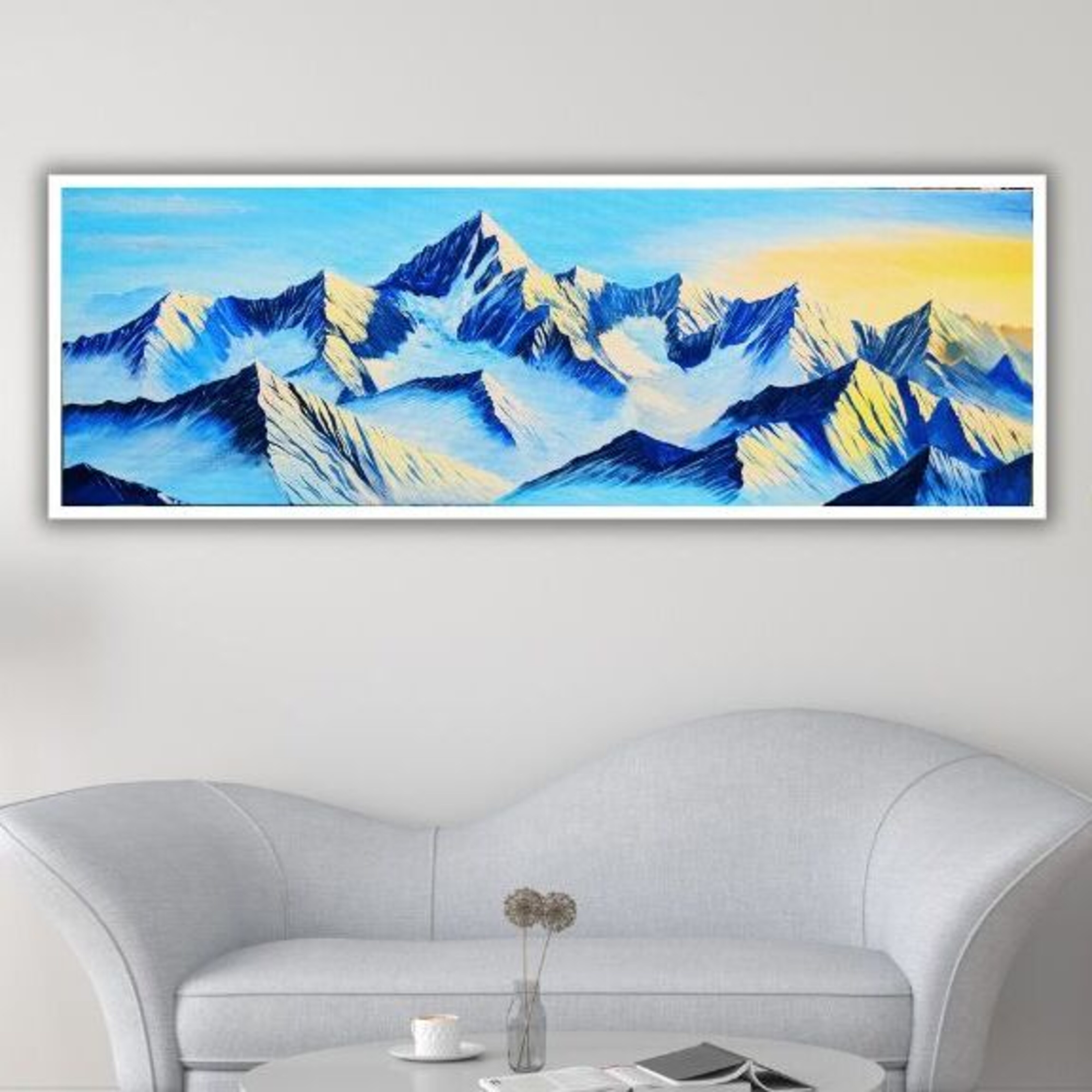 “Celestial Ascent” captures the ethereal beauty of snow-capped peaks kissed by the first light of dawn. With its poetic interplay of light and shadow, this piece evokes a sense of wonder and serenity—perfect for collectors seeking inspiration, tranquility, and the quiet power of nature immortalized in art. Due to the large size of the canvas, it is not feasible to transport it with a frame. The unstretched canvas allows the client to frame it according to their preference.