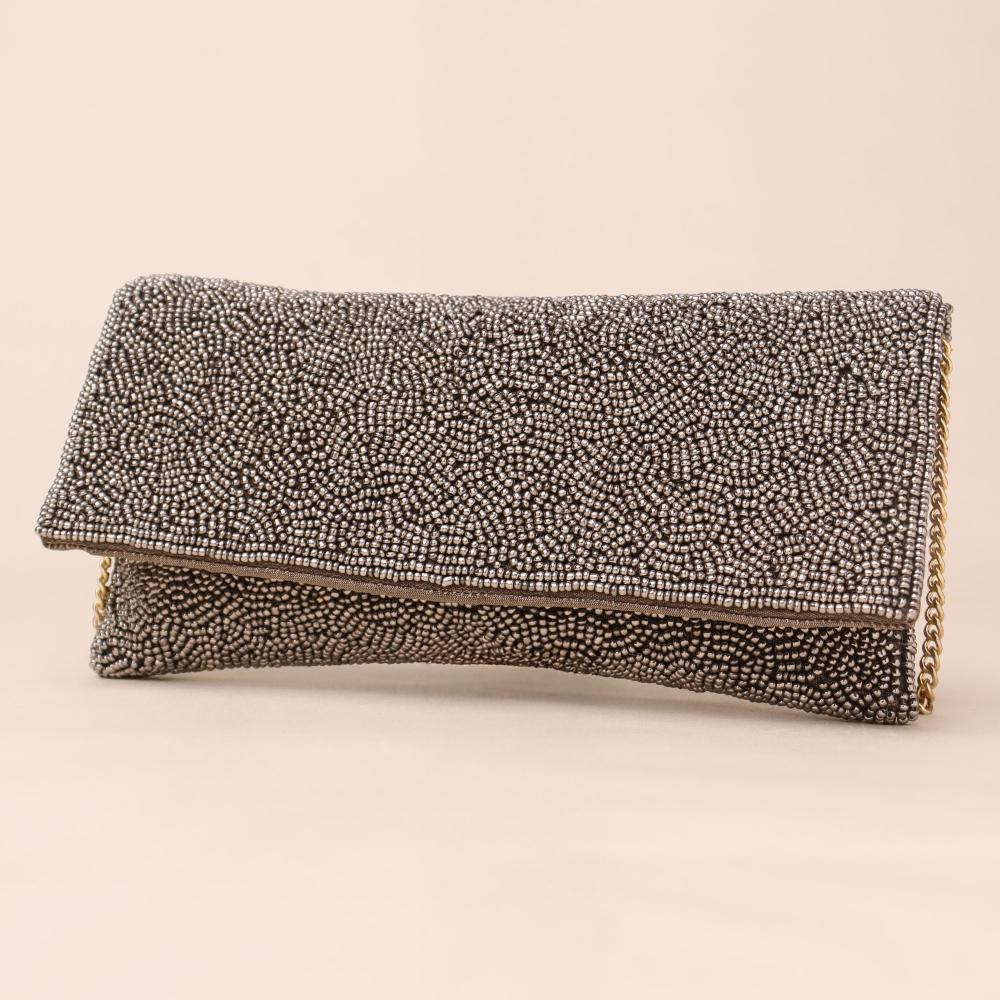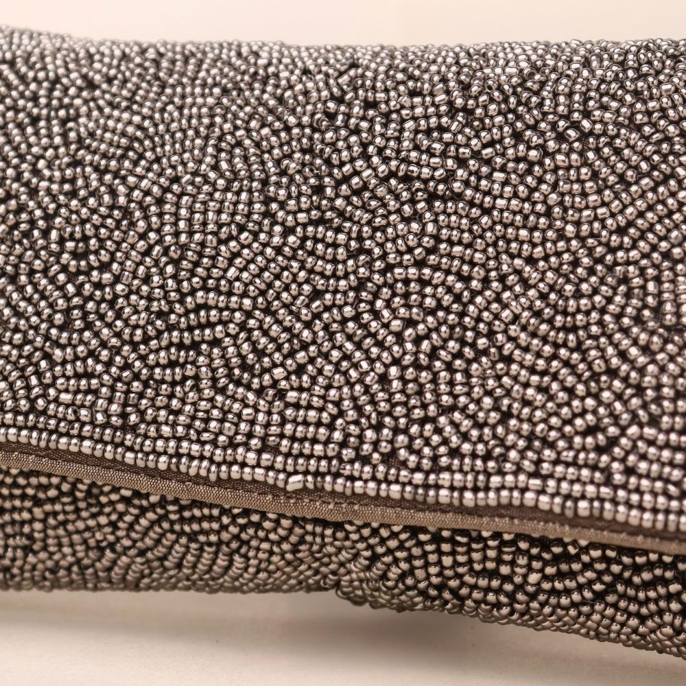 Elevate your evening ensemble with the Celestial Spark Sling Clutch — a shimmering masterpiece adorned with intricate silver beadwork. This versatile accessory doubles as a chic clutch or a stylish sling bag, thanks to its gleaming gold chain strap. Whether you’re headed to a cocktail party or a festive celebration, this sleek design promises to turn heads while carrying your essentials in effortless elegance.