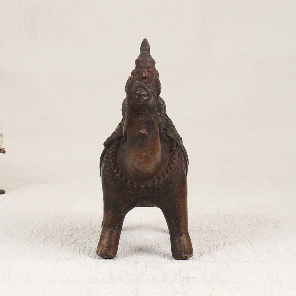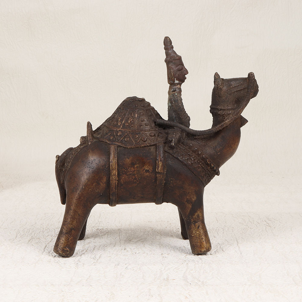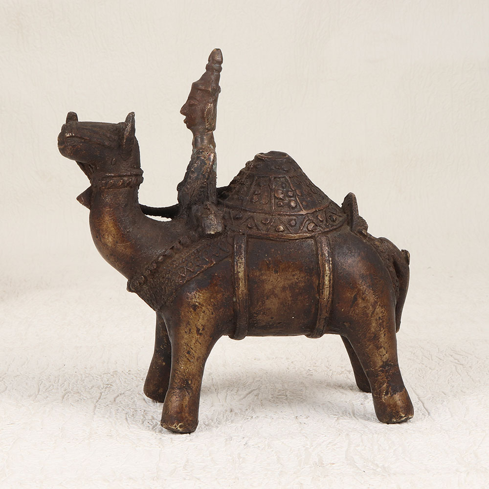 Enhance your decor with the timeless charm of our Vintage Brass Camel with Rider Statue. Handcrafted by talented artisans from Central India, this exquisite piece showcases the rich heritage of craftsmanship. The statue is meticulously crafted from high-quality brass, ensuring durability and an authentic aesthetic. The antique brown finish adds a touch of nostalgia, evoking the allure of bygone eras. With its intricate detailing and artisanal flair, this statue serves as a striking focal point for any space. Whether adorning your home, office, restaurant, hotel, or cafe, its versatile design seamlessly blends with various settings. This piece is not just a decorative accent but a valuable addition to your vintage collection, embodying the elegance of traditional Indian artistry. Celebrate special occasions by gifting this masterpiece to your loved ones, offering a unique and thoughtful present that symbolizes craftsmanship, history, and cultural richness.
