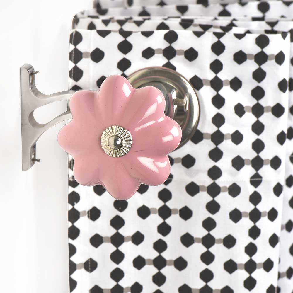 • Ceramic Big Flower Shaped  Pink Curtain Rod Finial