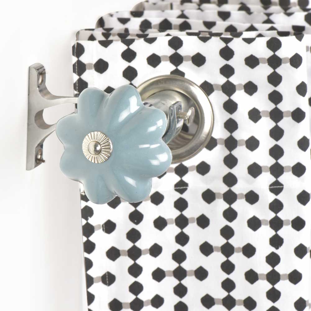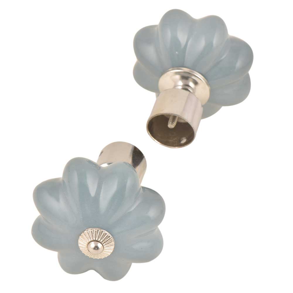 • Ceramic Big Flower Shaped Sky Blue Curtain Rod Finial