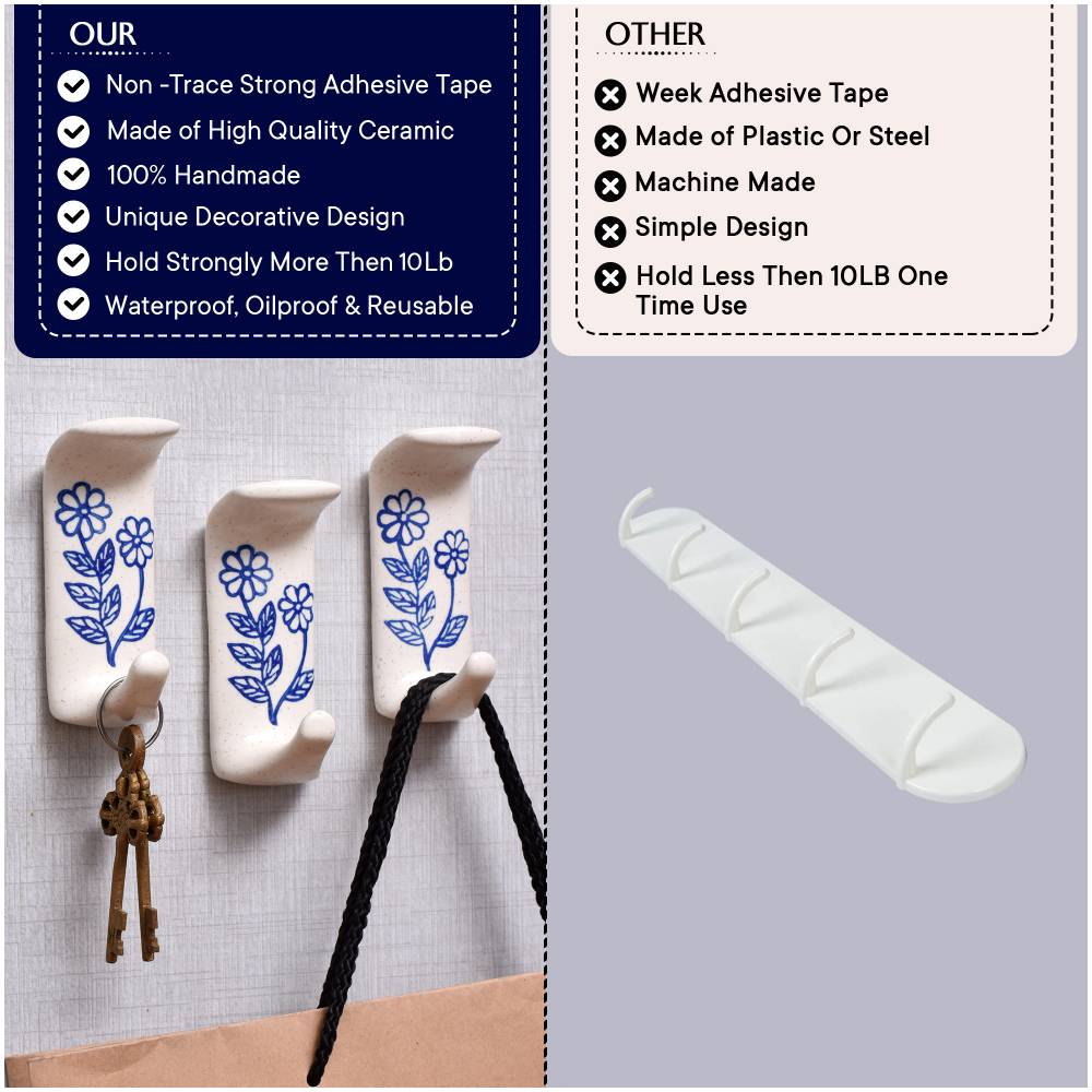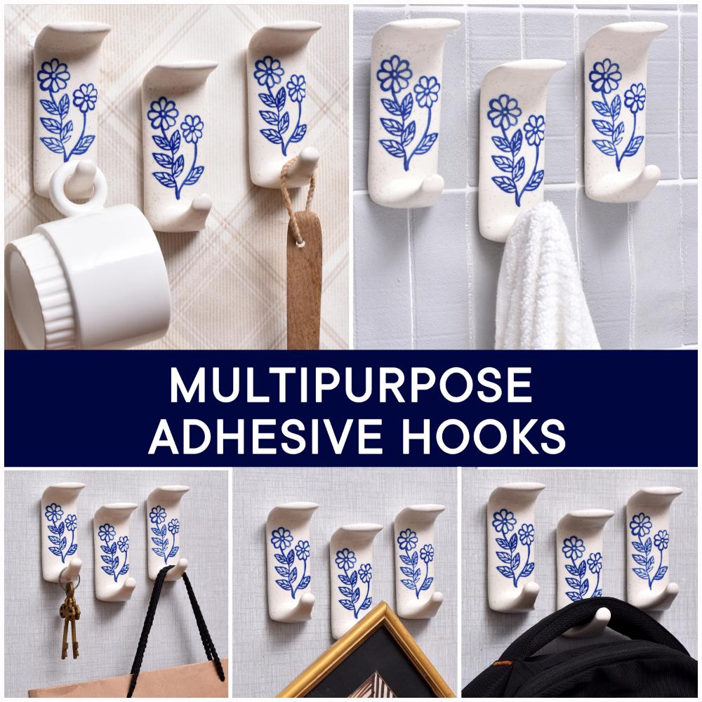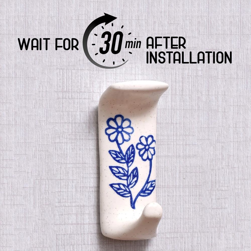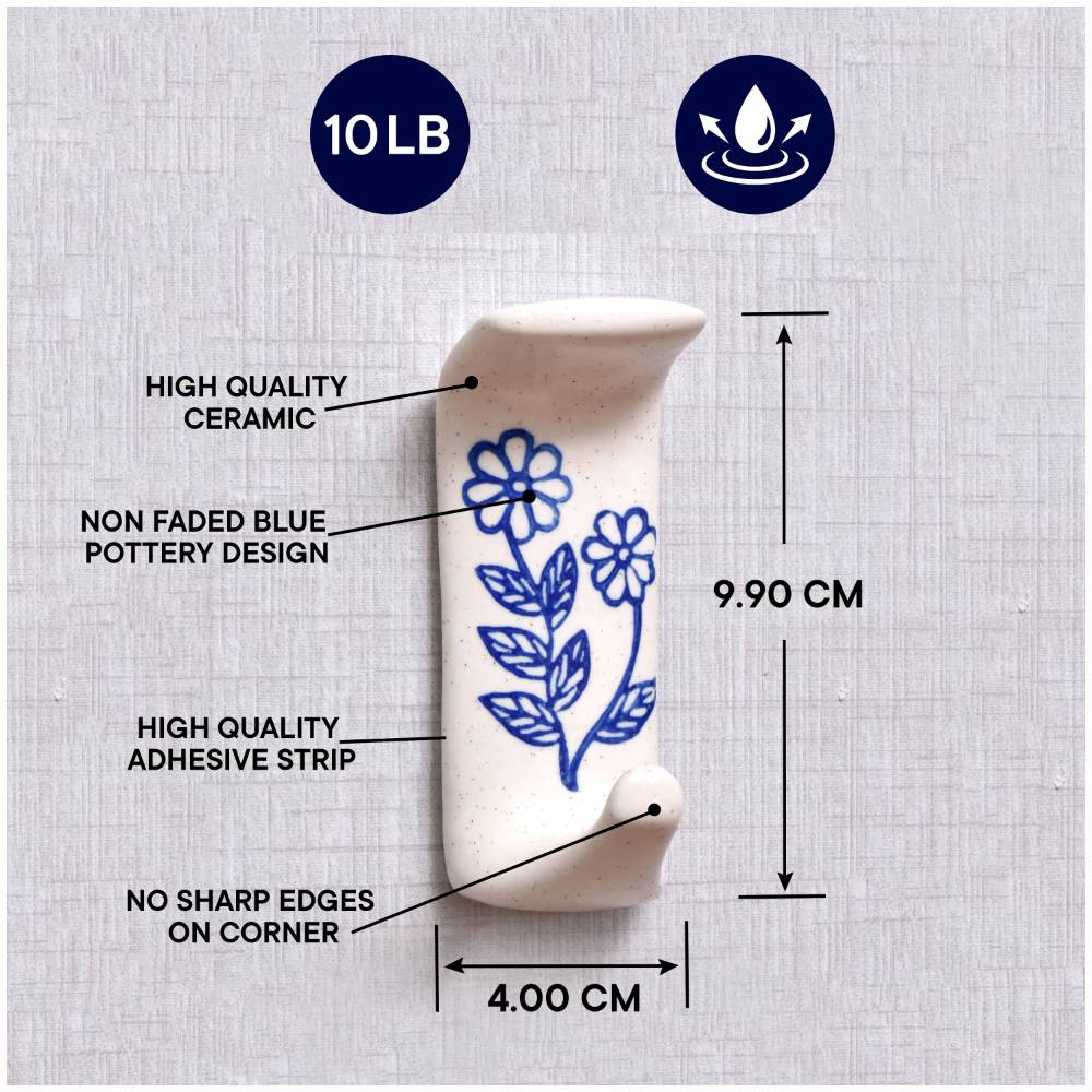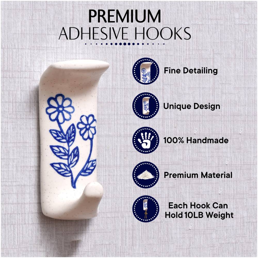 Indianshelf.com for bulk/wholesale orders.Indianshelf.us for personal purchases.Enhance your home with the Ceramic Blue Flower No Drill Wall Hooks. Featuring a lovely blue flower pattern on smooth ceramic, these wall hooks are both stylish and functional. Thanks to their no-drill adhesive backing, installation is a breeze—no tools or hardware required—making them perfect for renters or anyone seeking a simple way to organize and beautify their space.