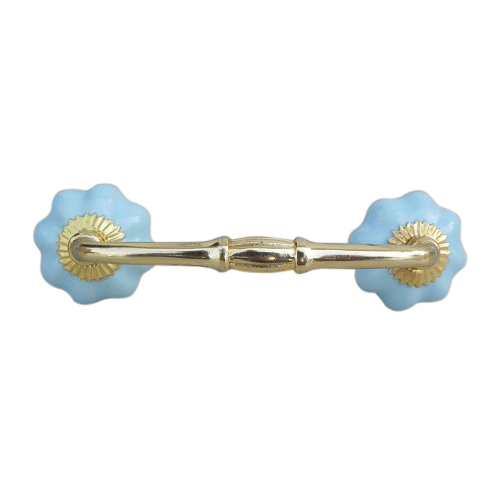 Sky Blue Melon Ceramic Bridge Handle. Ideal for Drawer, Dresser, Cabinet, Wardrobe, Cupboard and Almirah.