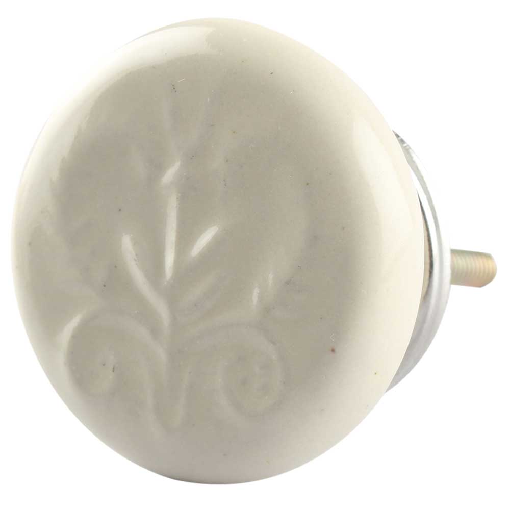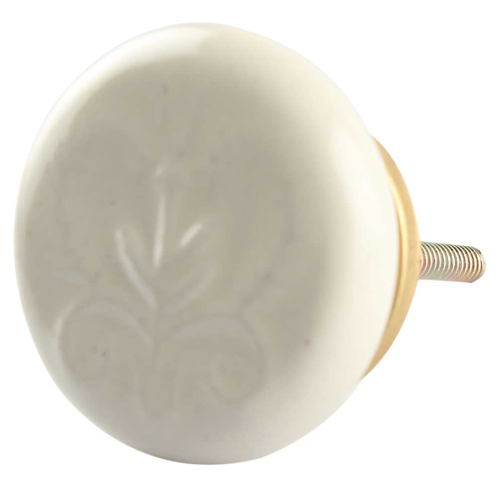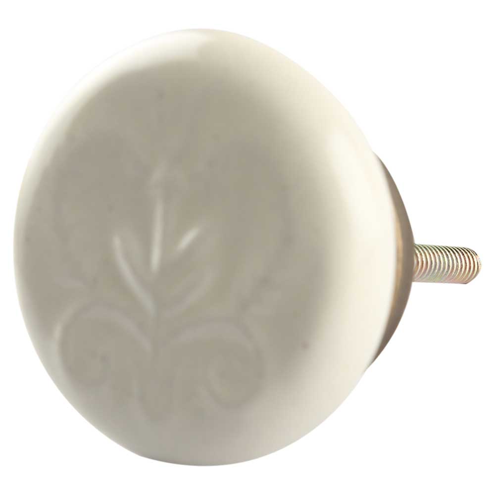 Ceramic Flat Wardrobe Knob in Cream Flower